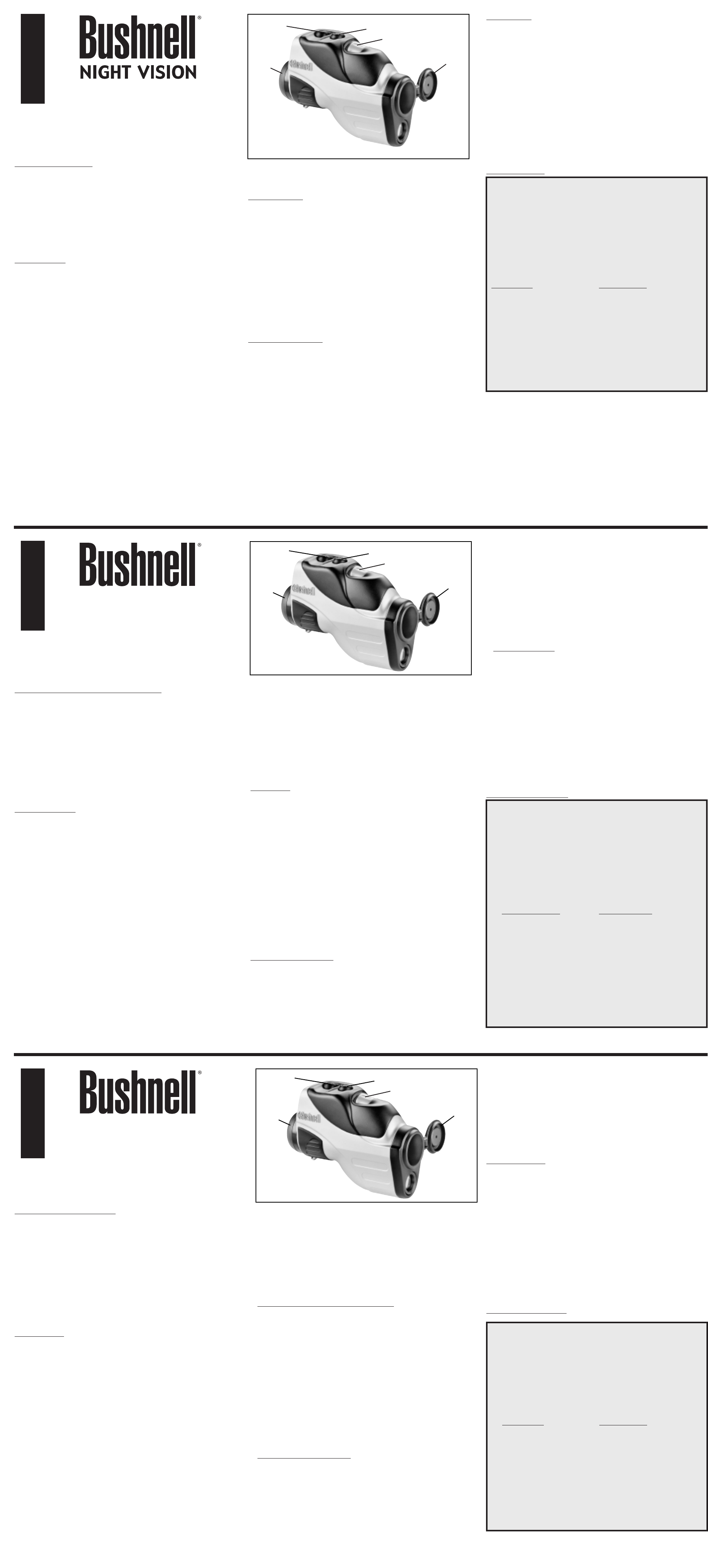 Congratulations on the purchase of your Bushnell Night Vision Product. Bushnell