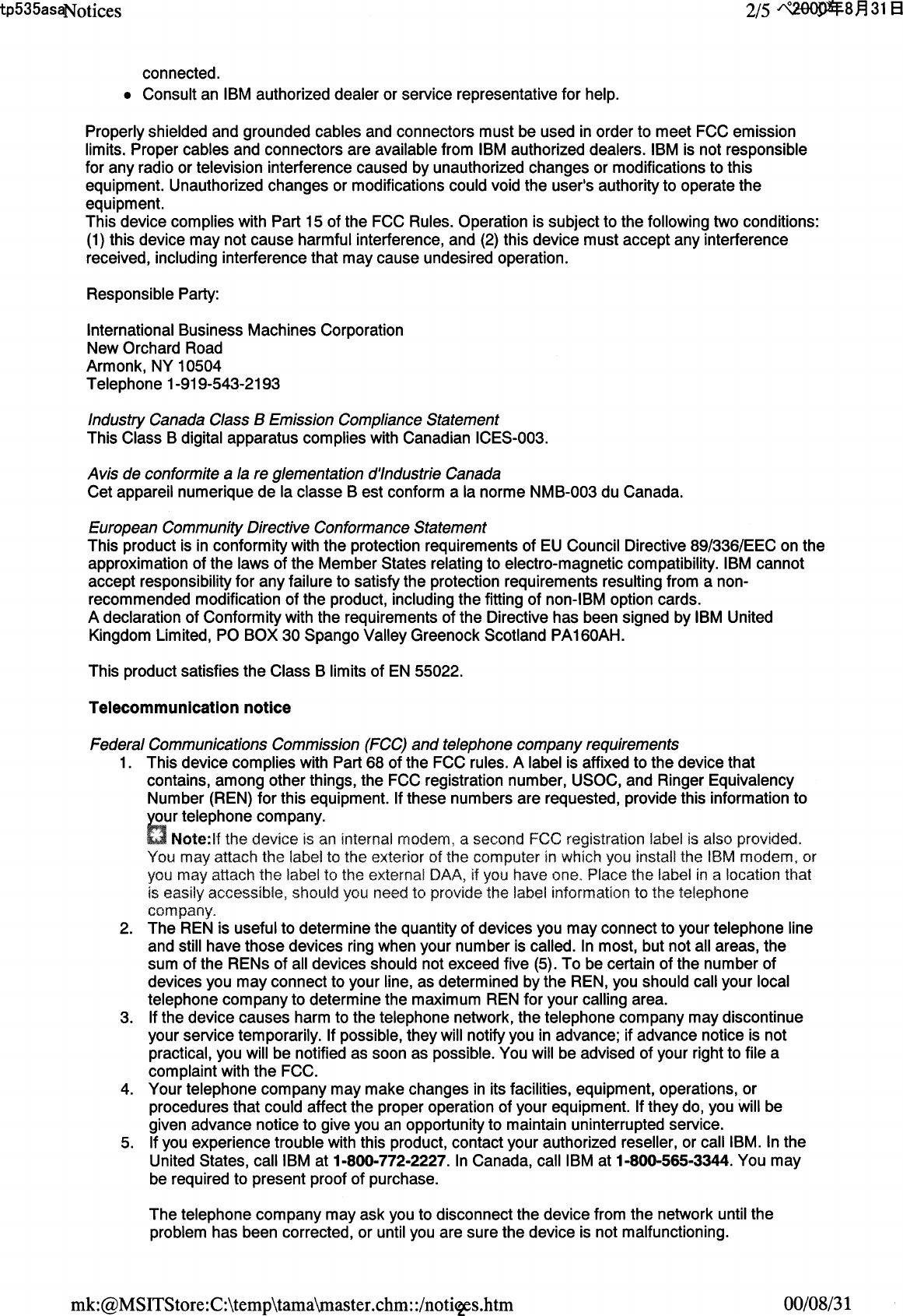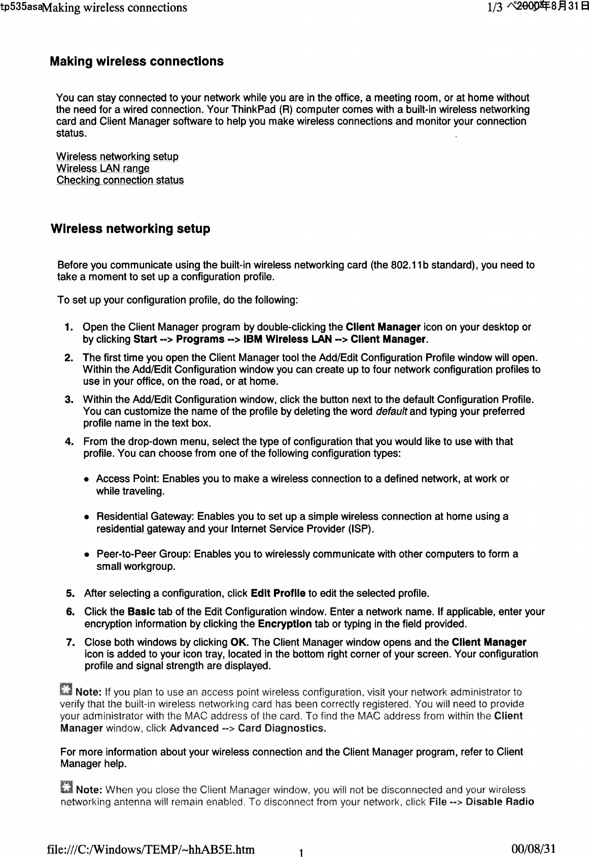 International Business Machines Corporation IBM ThinkPad Manual2 WLAN