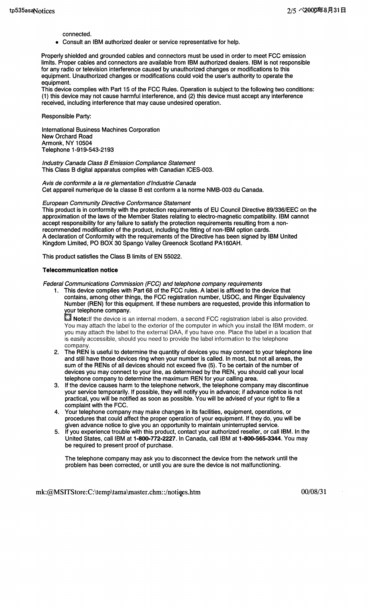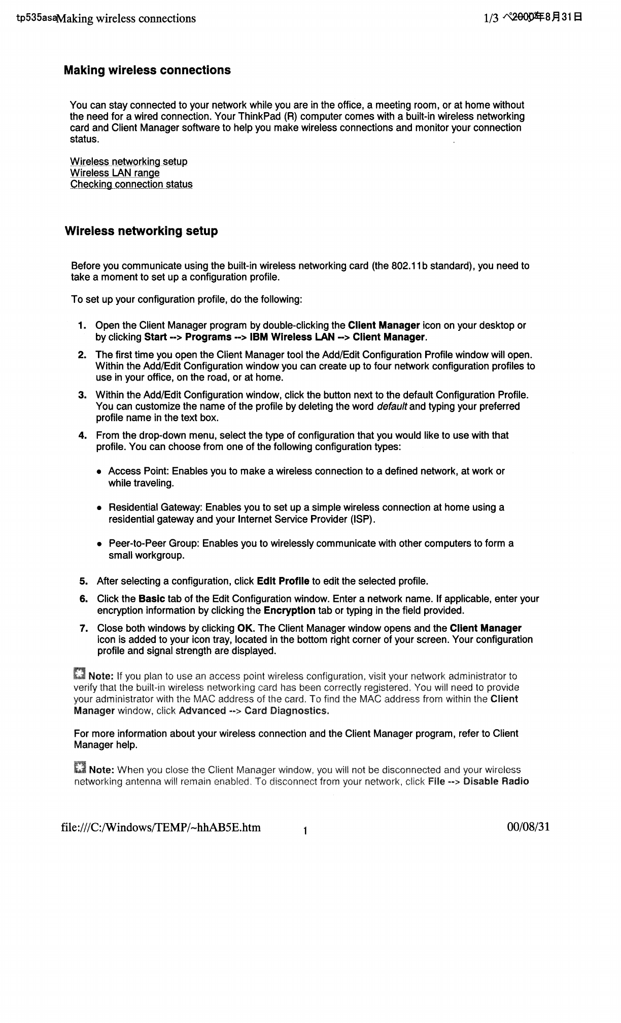 International Business Machines Corporation IBM ThinkPad Manual2 WLAN