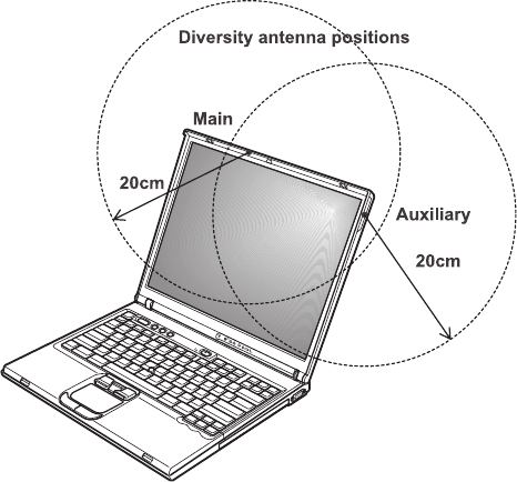 20 cm (8 inches) must be maintained between the antenna for the integrated Wireless LAN Mini-PCI