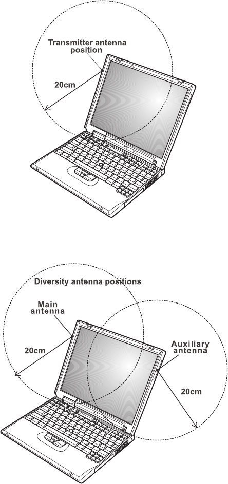 20 cm (8 inches) must be maintained between the antenna for the integrated Wireless LAN Mini-PCI