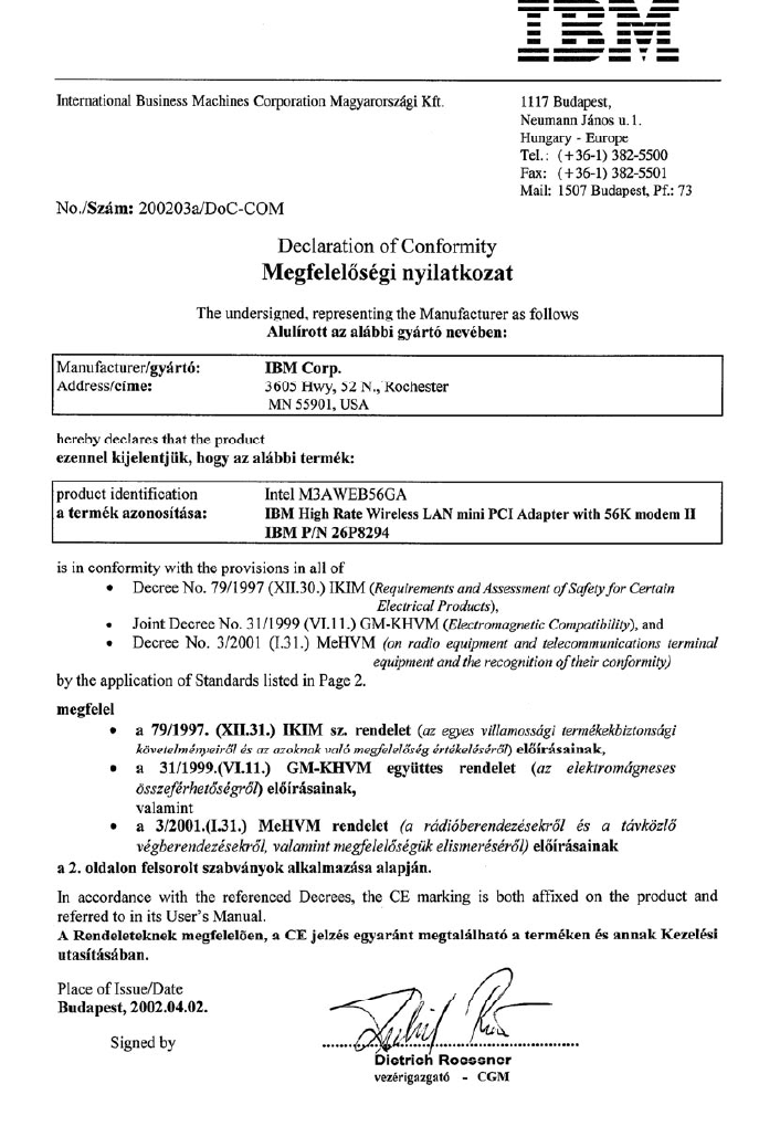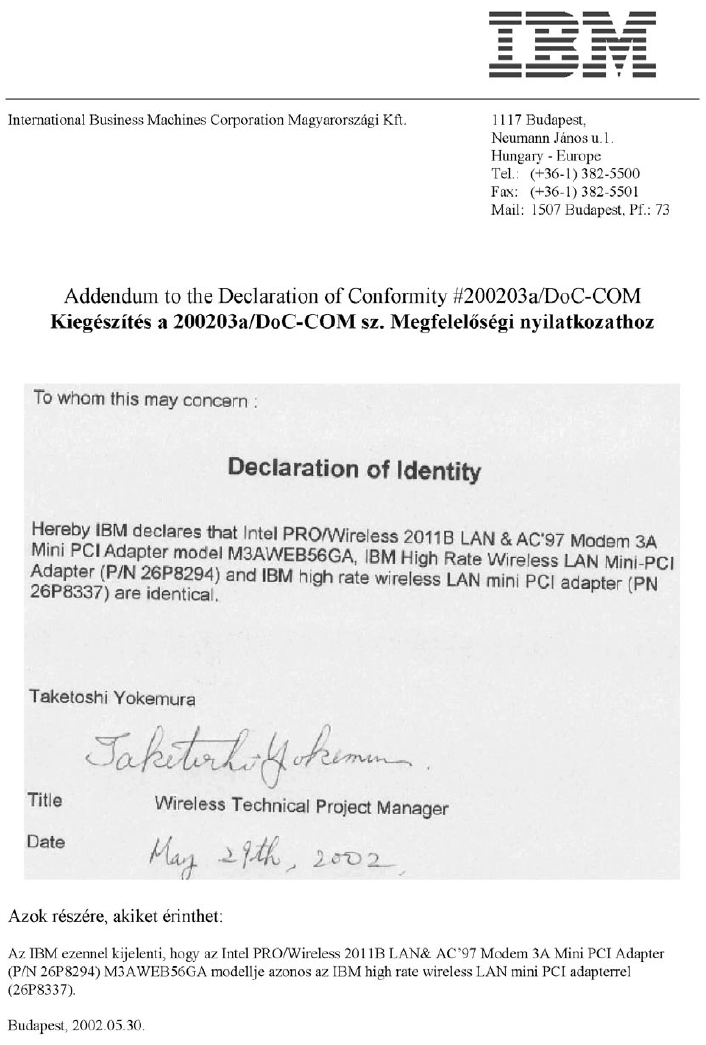 Business Machines 20020300D3L IBM ThinkPad R40 Series - 802.11a/b Mini PCI User Manual