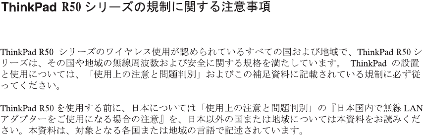 The ThinkPad R50 Series computer complies with the radio frequency and safety standards of any