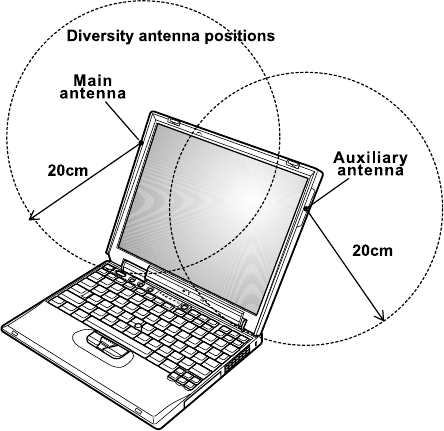 20 cm (8 inches) must be maintained between the antenna for the integrated Wireless LAN Mini PCI