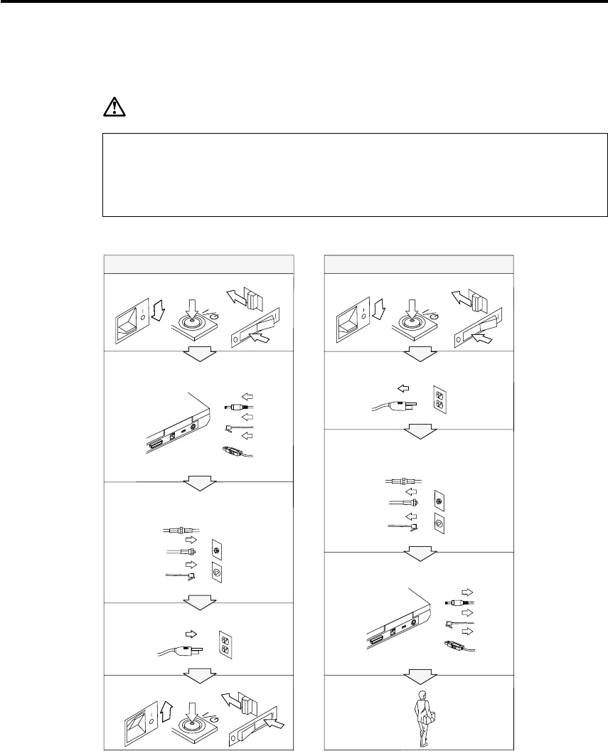vTo avoid electric shock, do not use your computer with the telephone cable connection during an electrical
