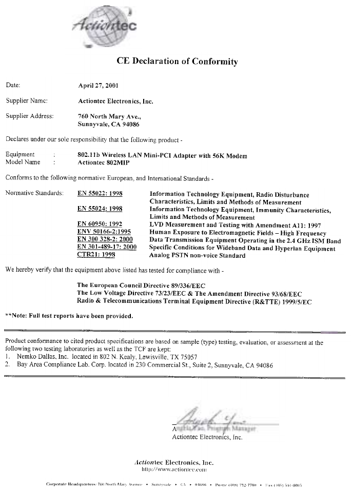 Hereby Ambit declares that this “J07M041.00”modem is in conformity with