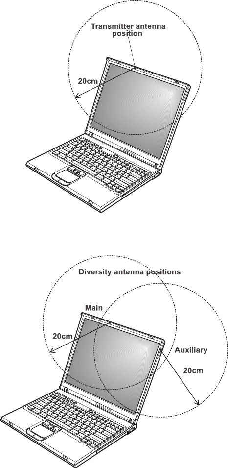 20 cm (8 inches) must be maintained between the antenna for the integrated Wireless LAN Mini-PCI