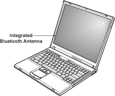 Note: The antenna of IBM Integrated Bluetooth with 56K Modem is located on the left side of the