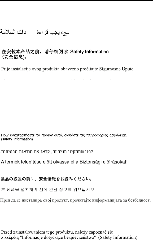 Ennen kuin asennat tämän tuotteen, lue turvaohjeet kohdasta Safety