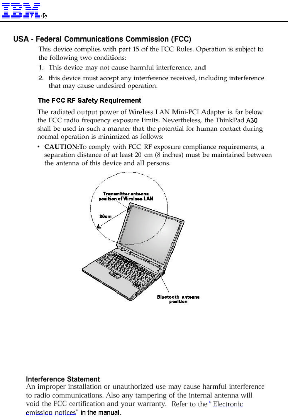 site, all other wireless features in your ThinkPad are required to turn off.