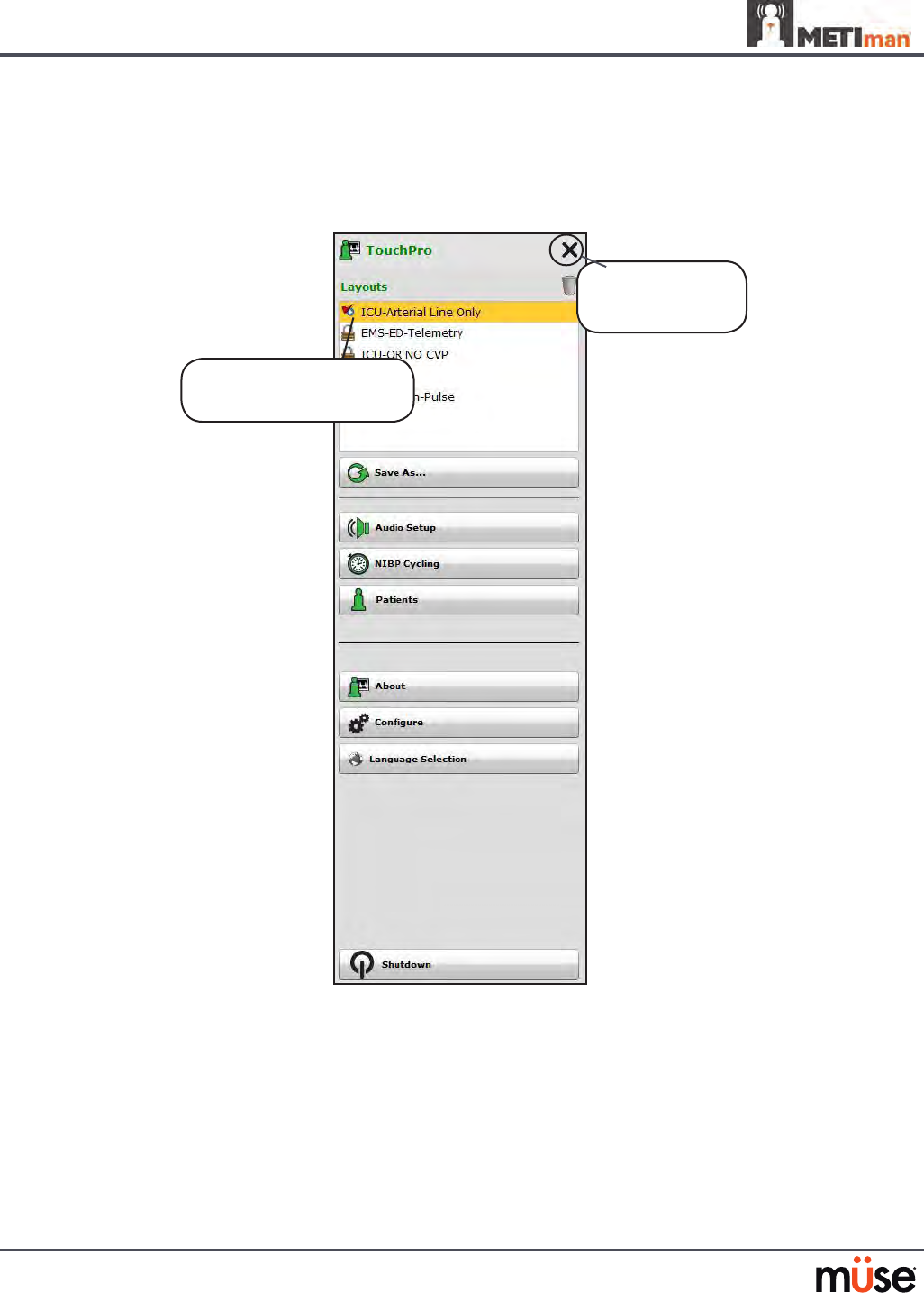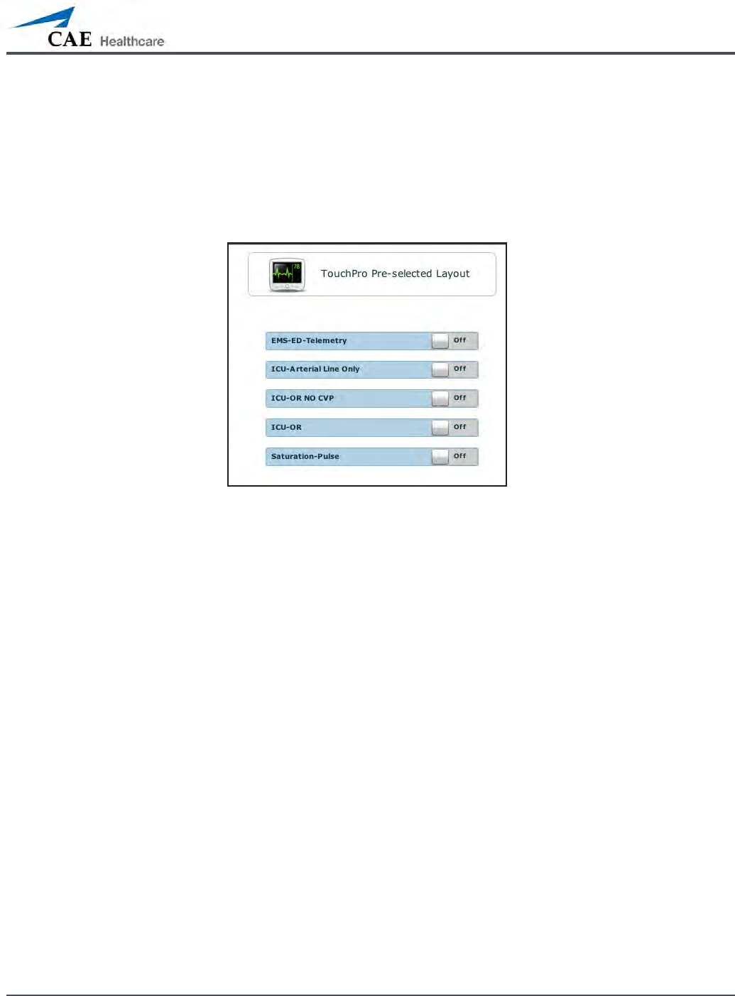 NOTE: When connected to the simulator, the TouchPro only displays the active Patient.