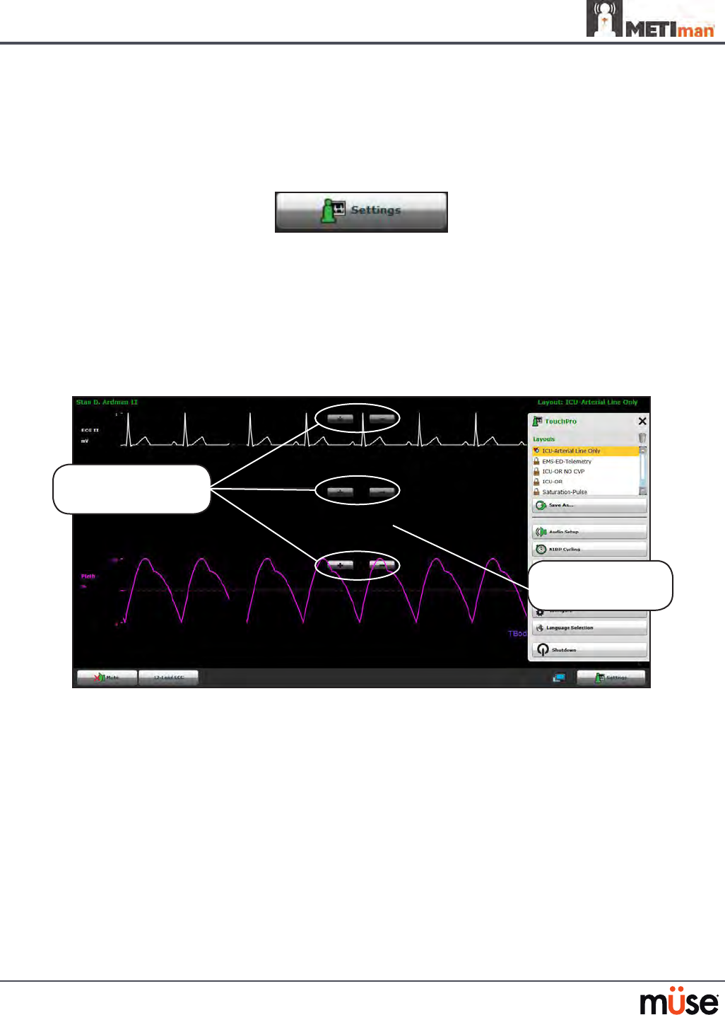 the TouchPro screen to access the Settings menu. From the Settings menu, click Patients to