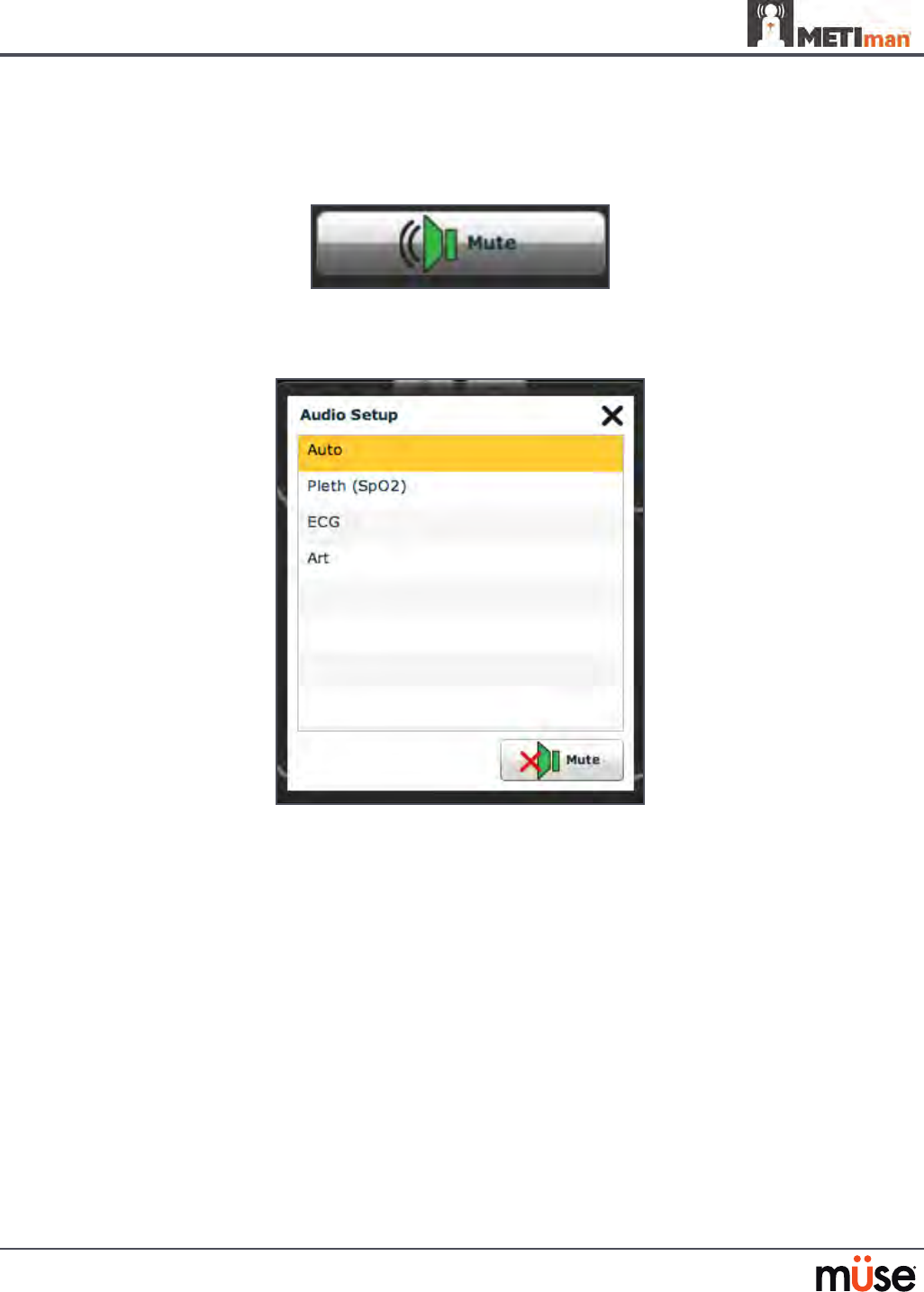 Clicking the Mute button from the Audio Setup window mutes all alarms. Click the Mute