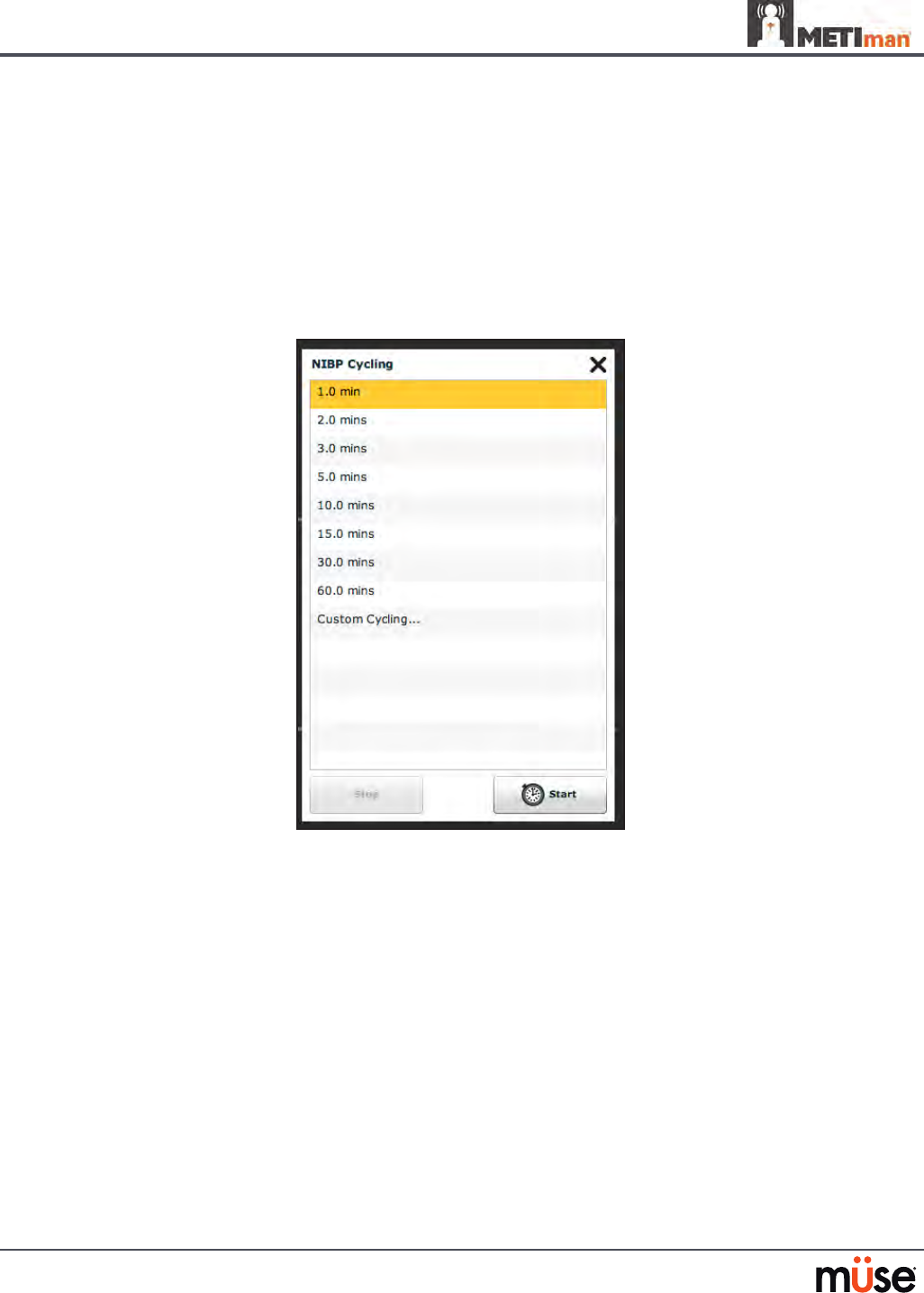 Cycling. The NIBP Cycling menu appears. From the NIBP Cycling menu, select the desired