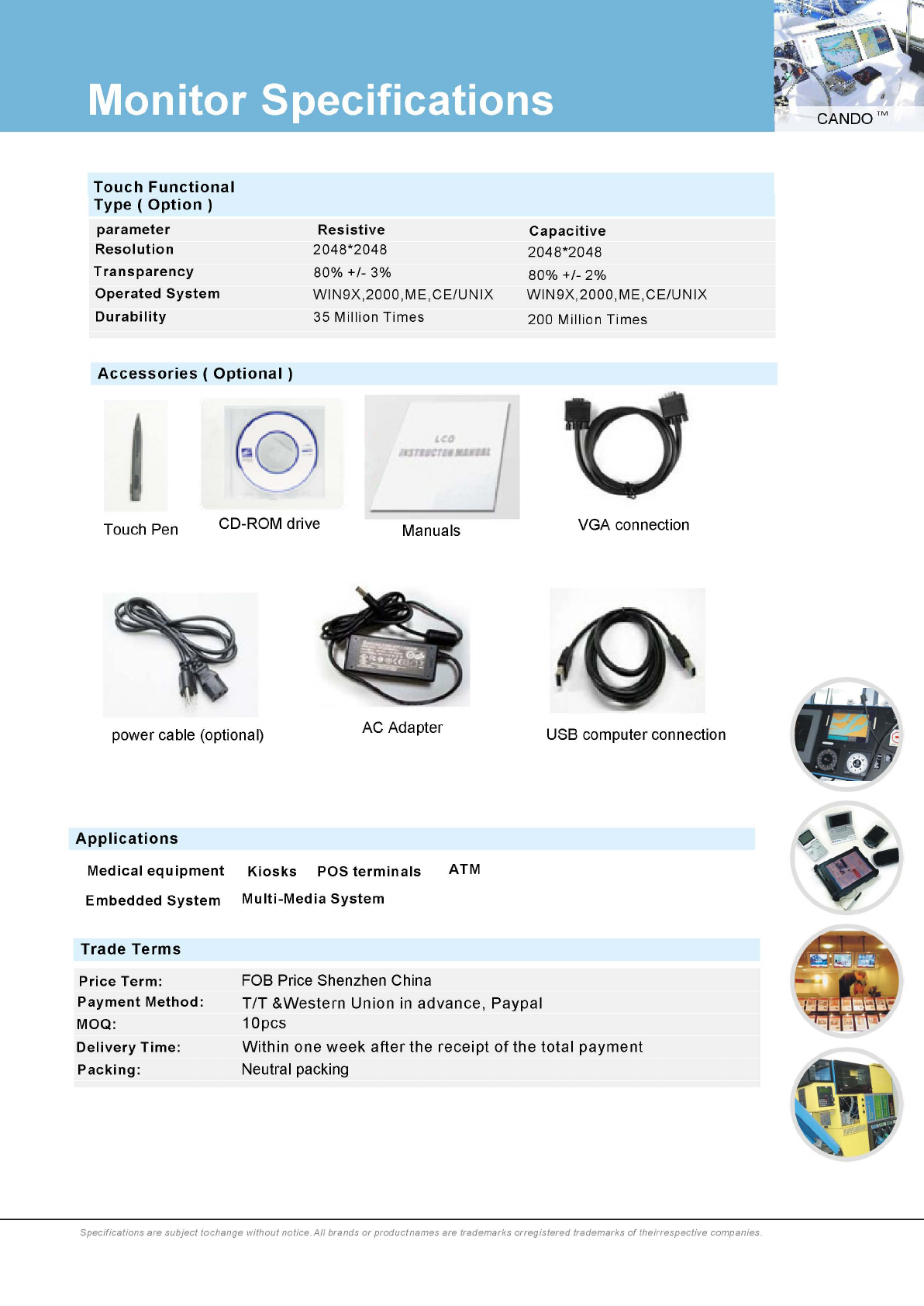 CANDO 800668 LCD TOUCH SCREEN MONITOR User Manual