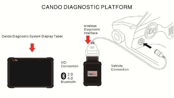 vehicle data to the CANDO Display Tablet without a physical connection. The