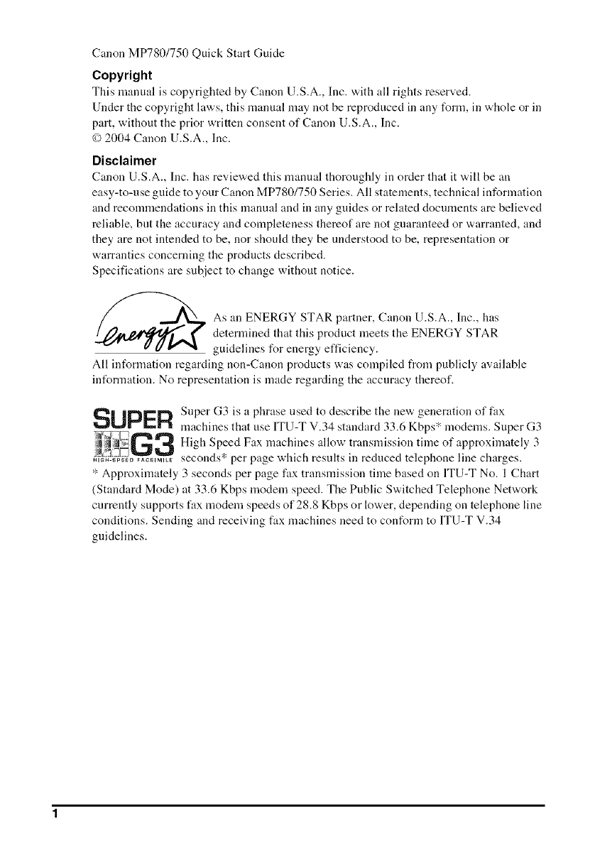 As an ENERGY STAR partner, Canon U.S.A., Inc., hasdetermined that this product meets the ENERGY STAR