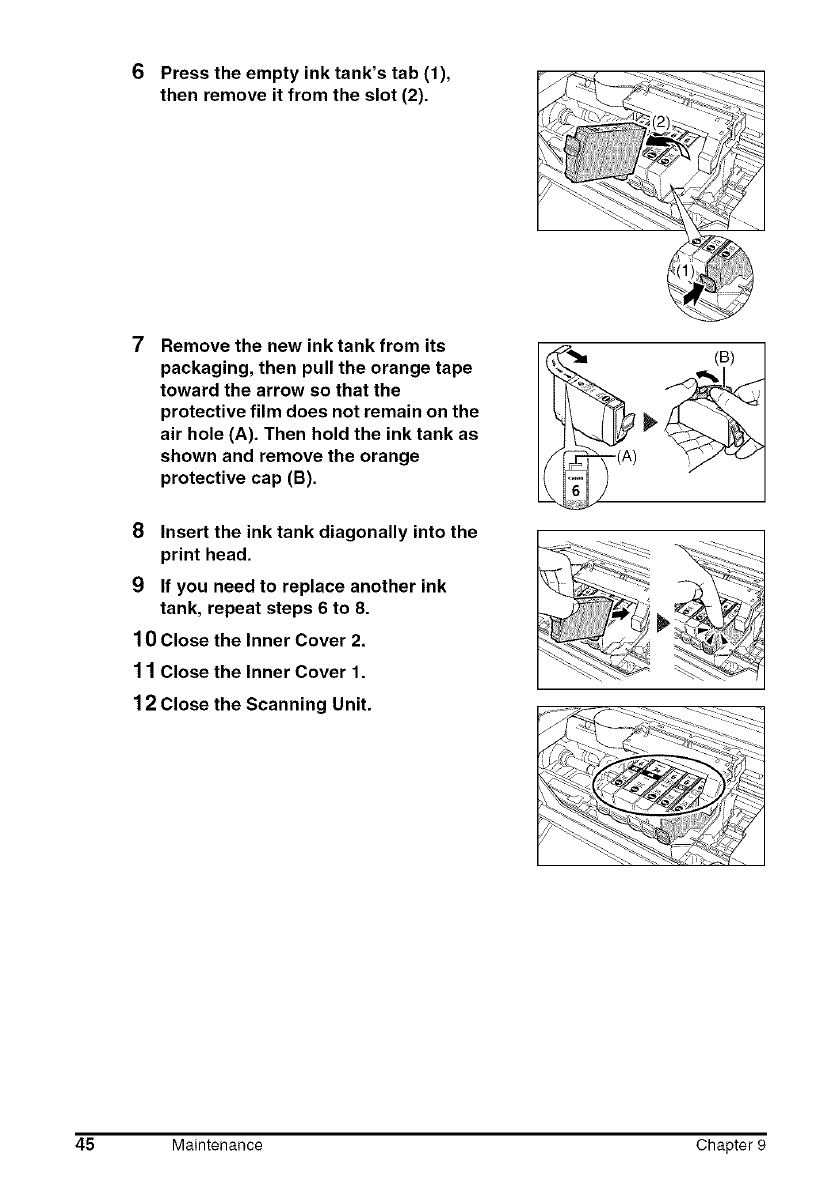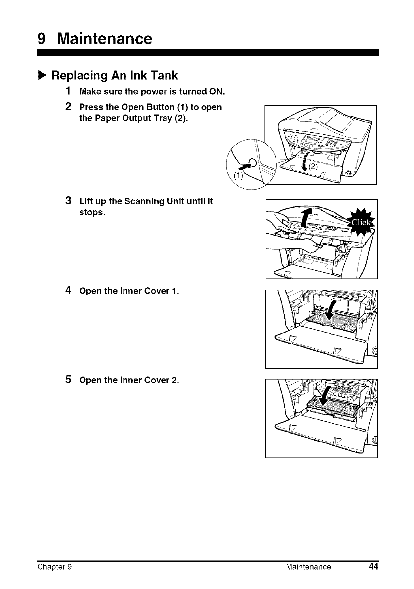 For details on ink tank replacement, refer to "Maintenance" in this guide.