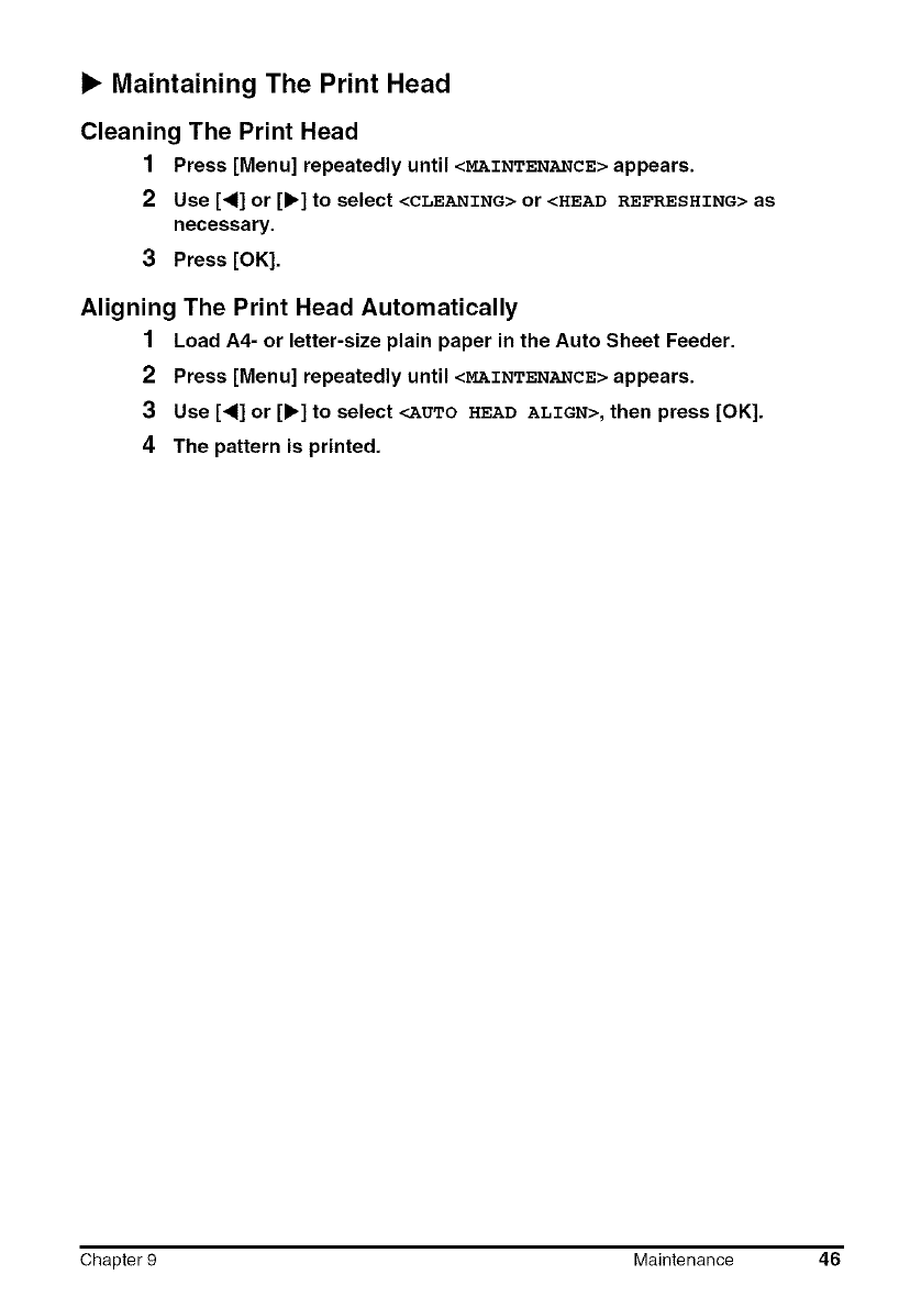 2Press [Menu] repeatedly until <MAINTENANCE> appears.