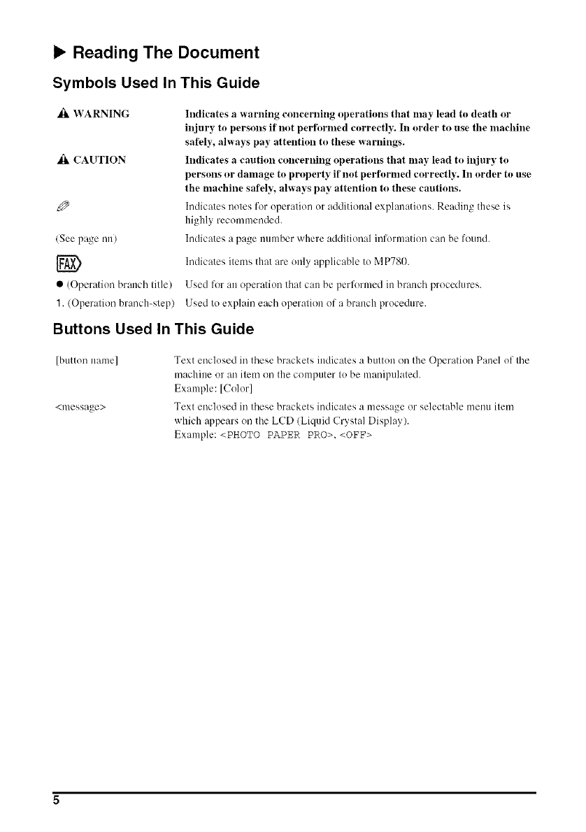 easy-to-use gl,l,ide to your Canon MP780/750 Series. All statements, technical information