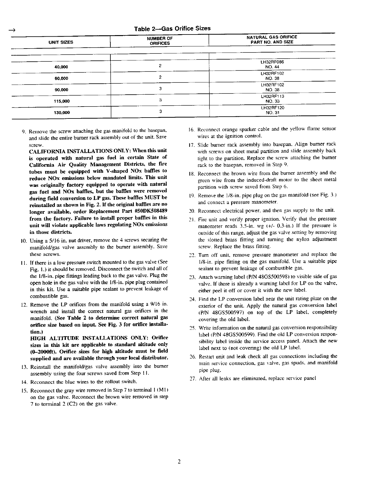 --_ Table 2--Gas Orifice Sizes