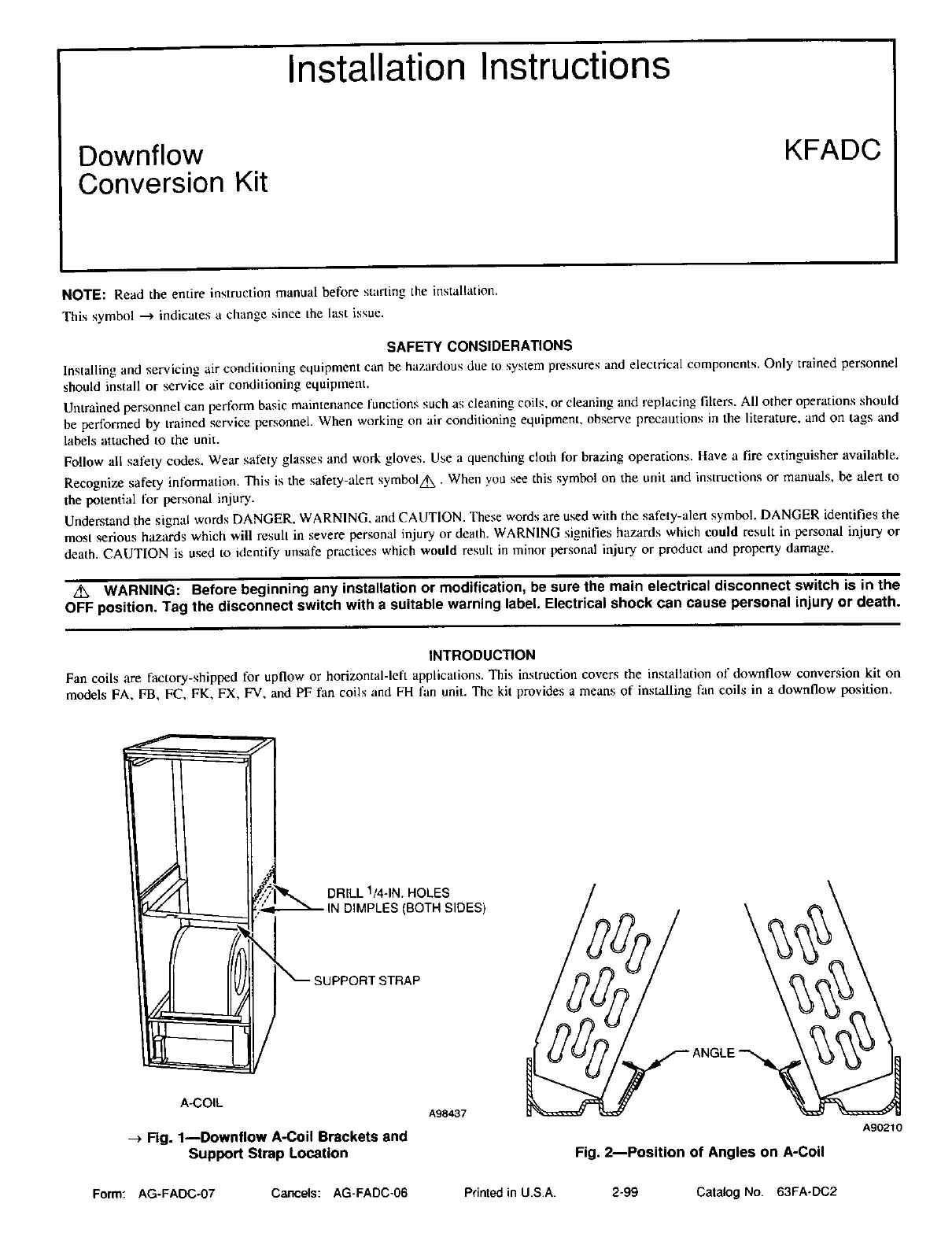 Form: AG-FADC-07 Cancels: AG-FADC-O6 Printed in U.S.A. 2-99 Catalog No. 63FA-DC2