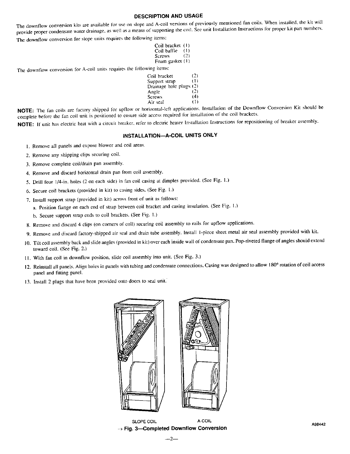11. With fan coil in downflow position, slide coil assembly into unit. (See Fig. 3.)