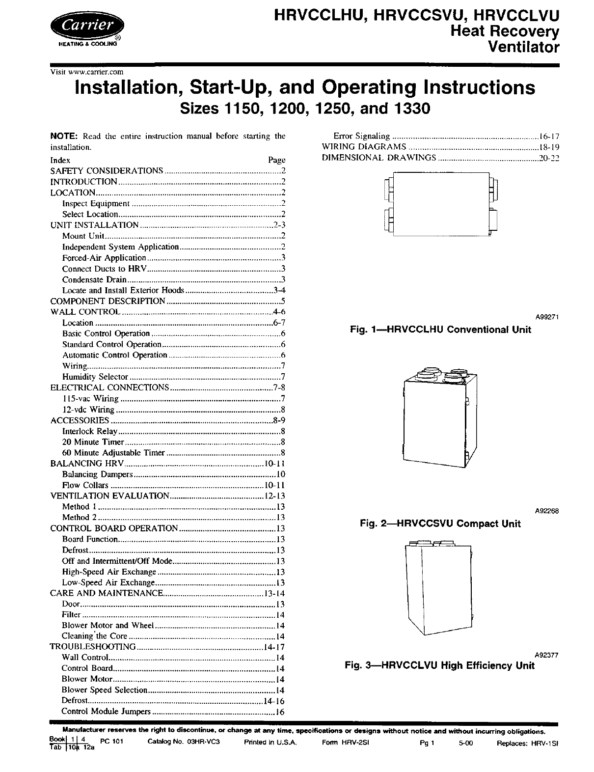 _2 PC 101 Catalog NO. 03HR-VC3 Printed in U.S.A. Form HRV-2SI Pg 1 5-00 Replaces: HRV-1SI
