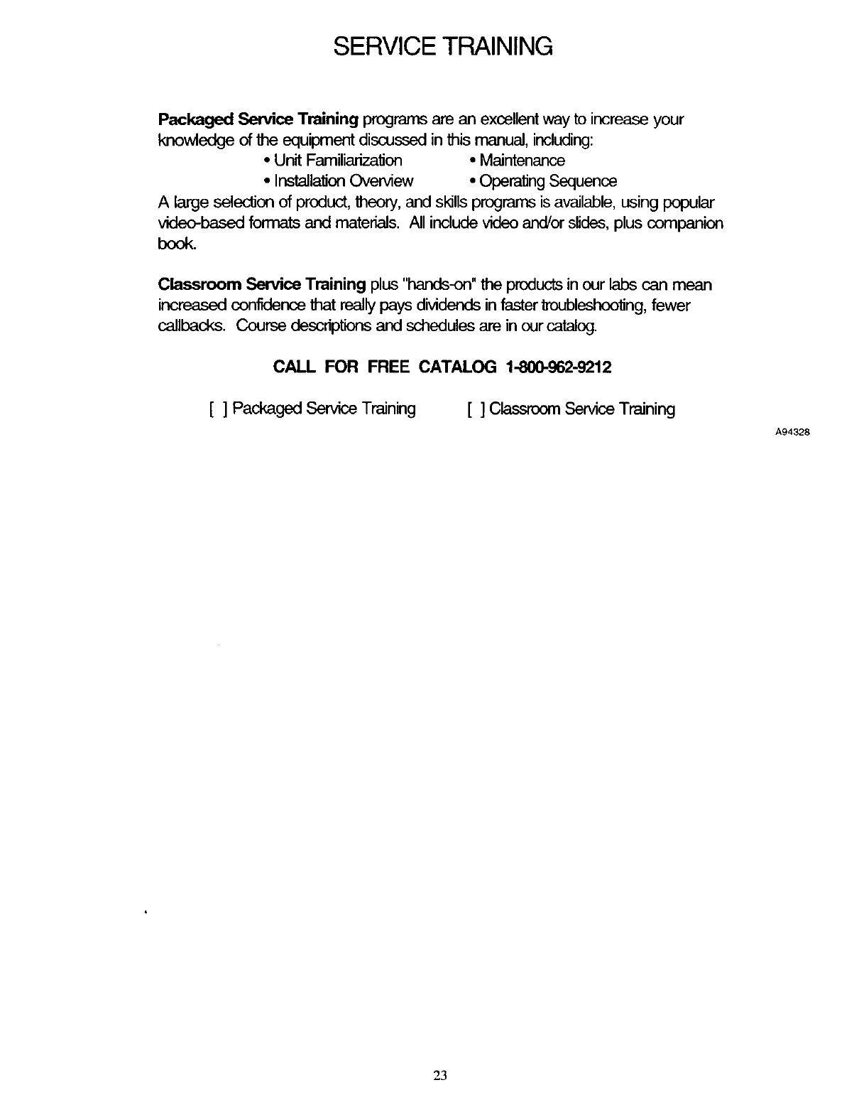 [ ] Packaged Service Training [ ] Classroom Service Training