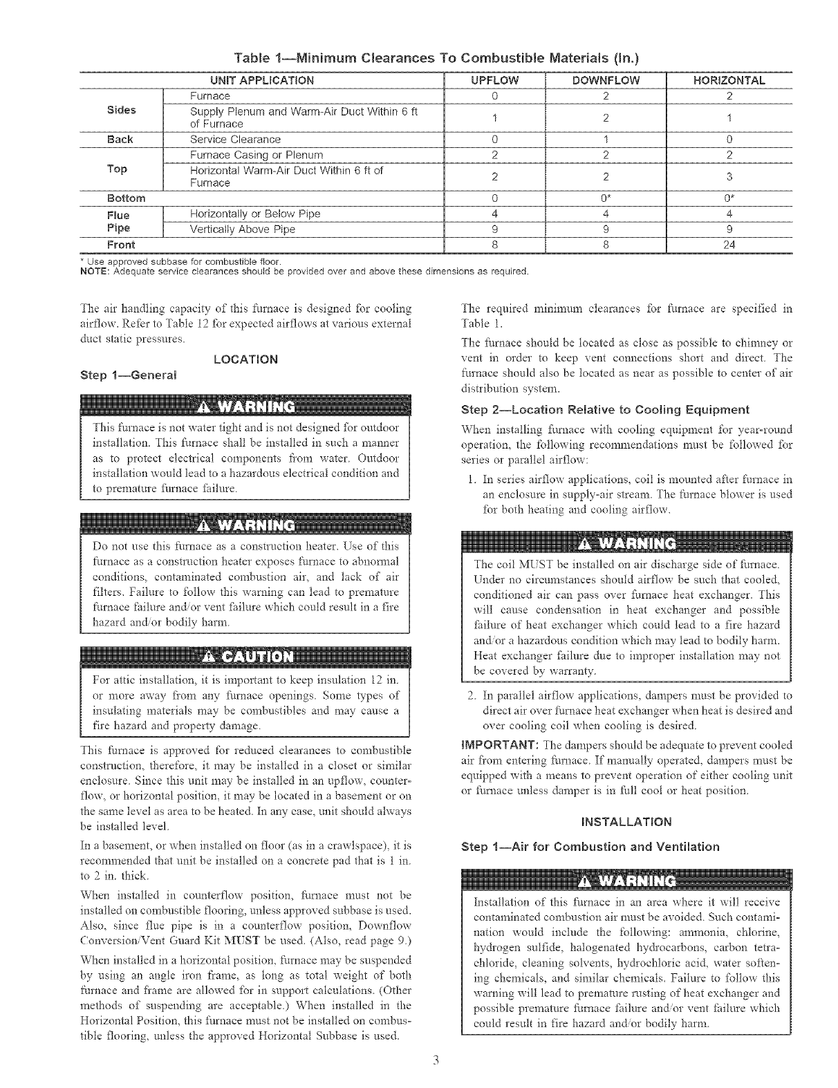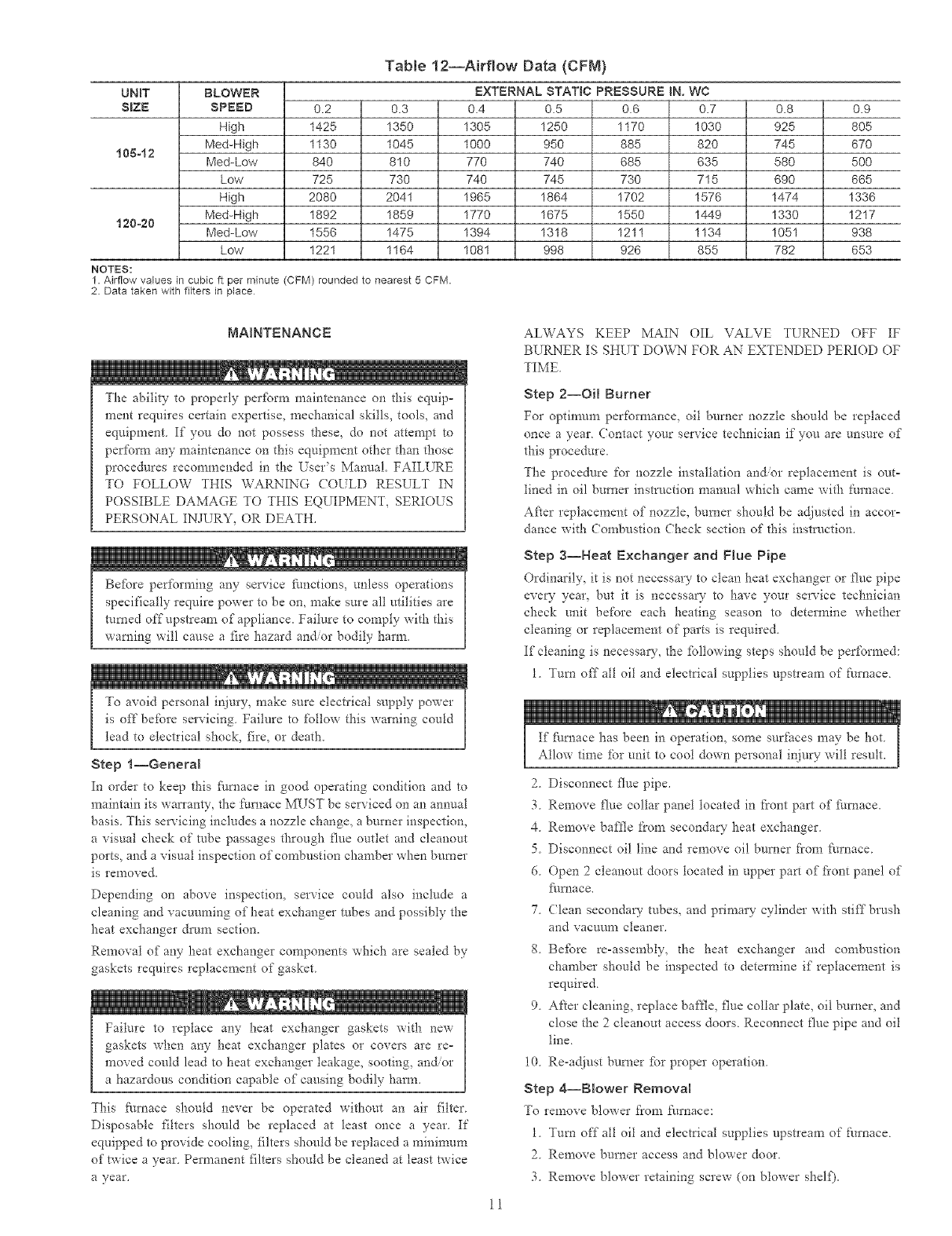 1. Airflow values in cubic fi per minute (CFM) rounded to nearest 5 CFM.