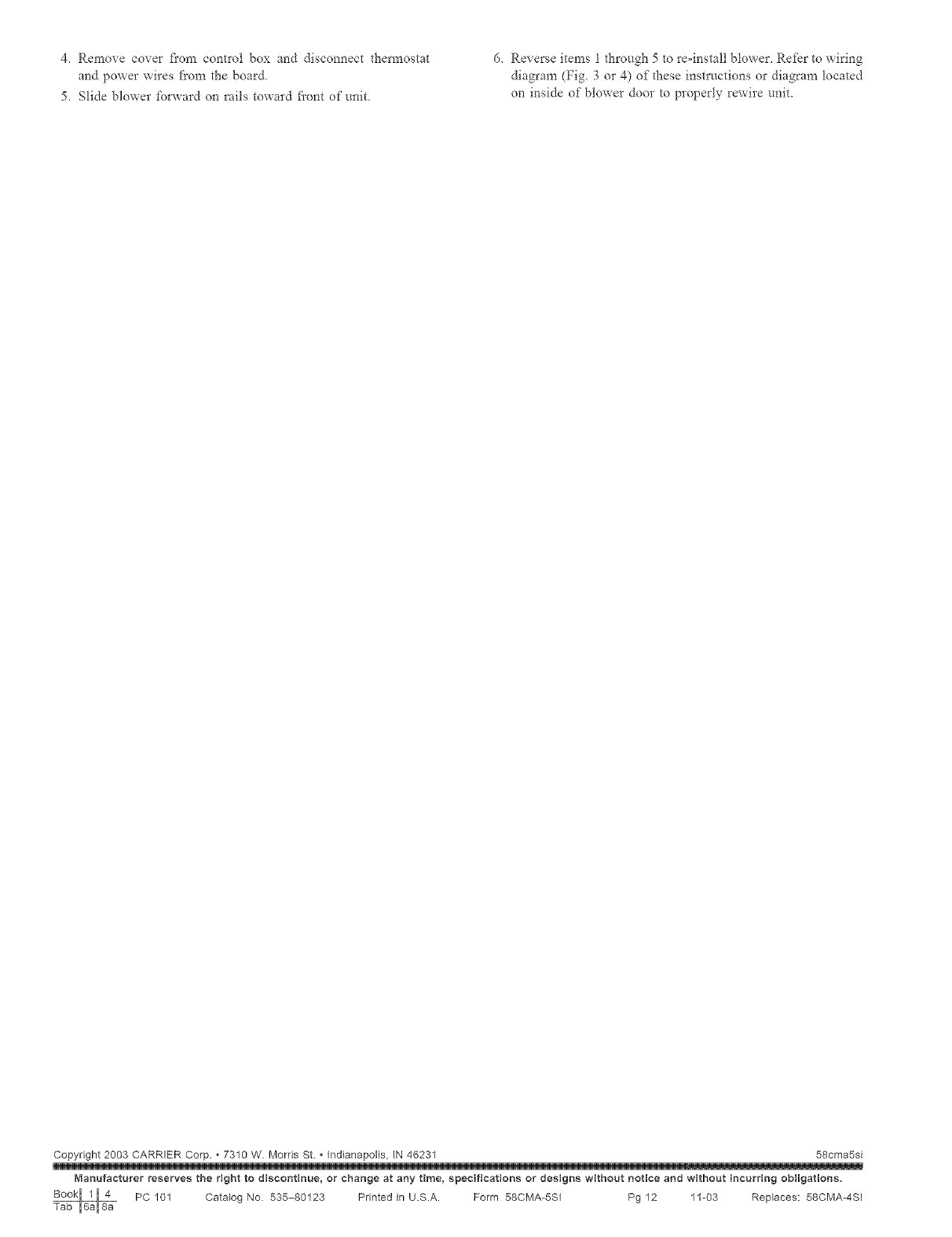 Copyright 2003 CARRIER Corp. _ 7310 W. Morris St • Indianapolis. IN 46231 58cma5si