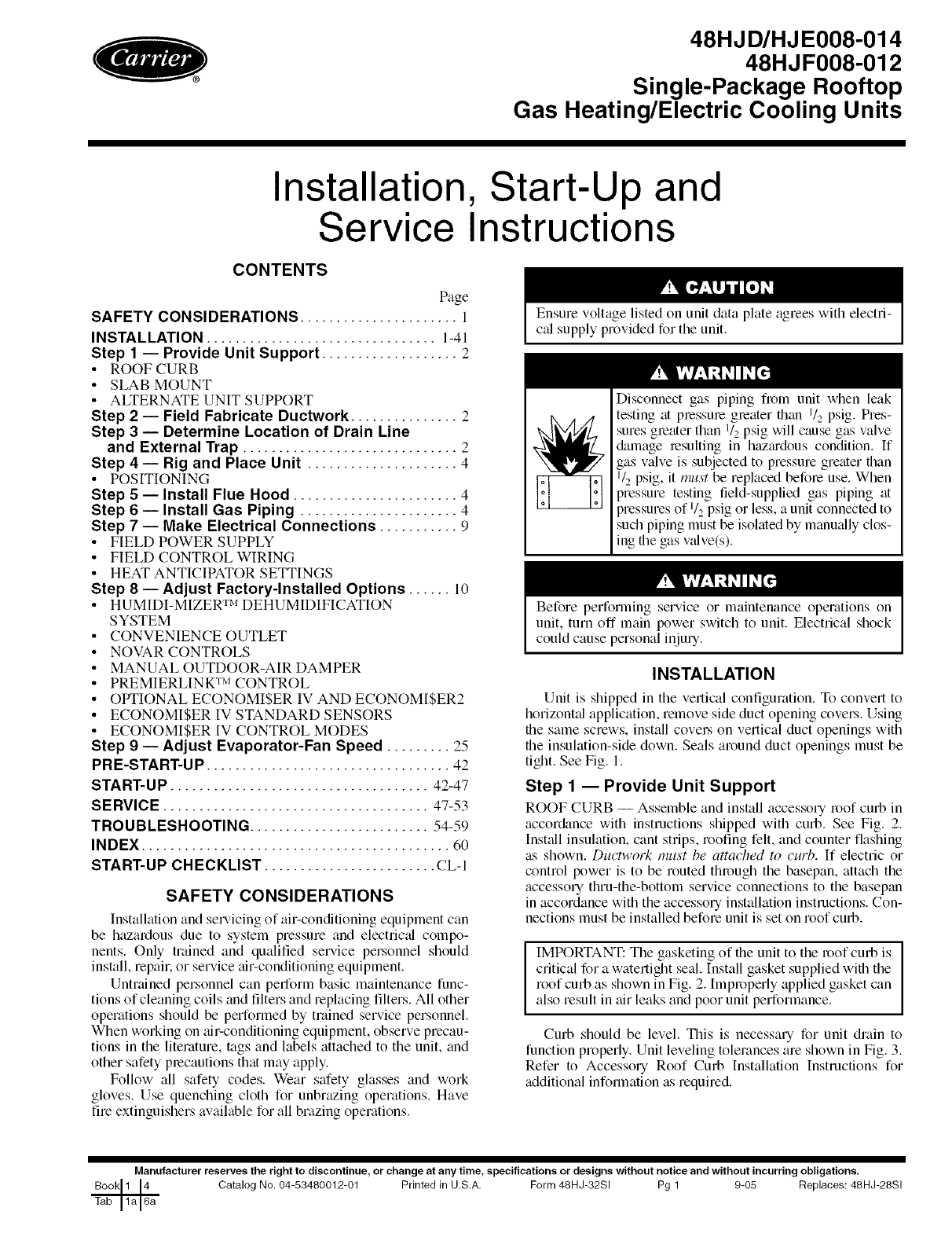 Catalog No, 04-53480012-01 Printed in U.S,A, Form 48HJ-32SI Pg CL-1 9-05 Replaces: 48HJ-28SI