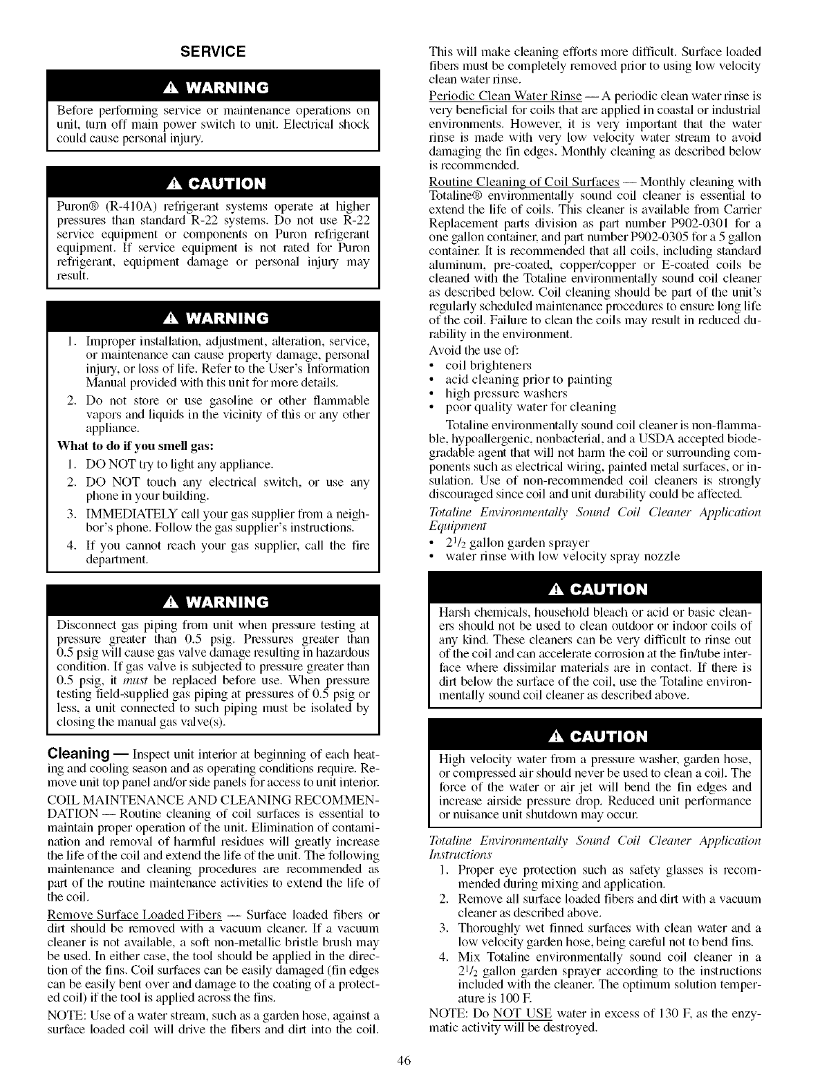 Cleaning .............................................. 46