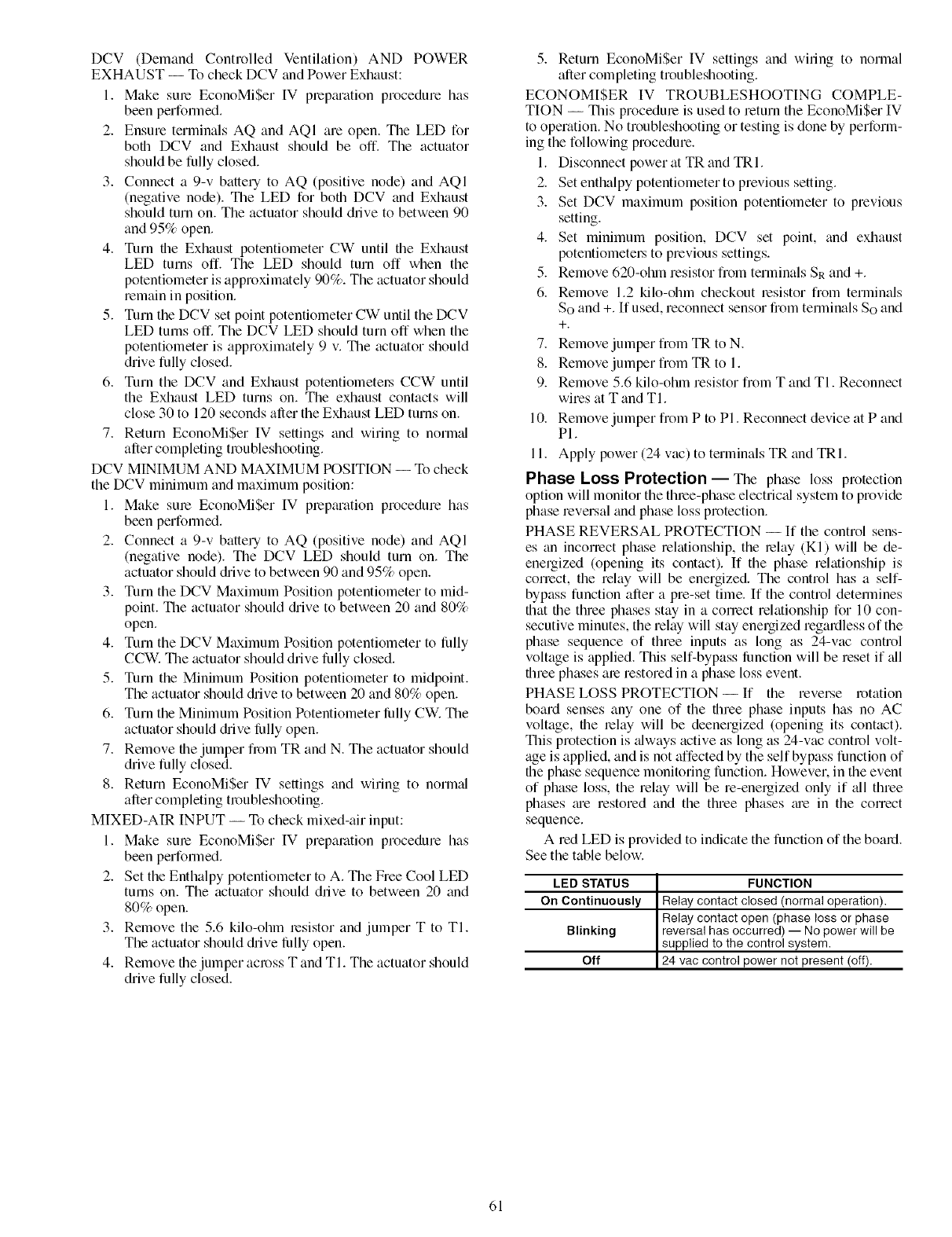 Economizer Operation During Power Failure .......... 49