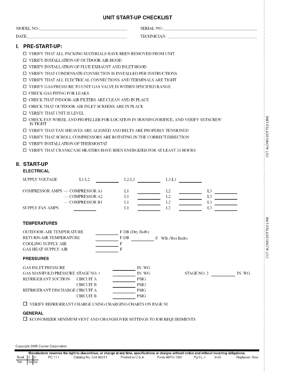 Book 1 14 PC 111 Catalog No, 534-80211 Printed in U.S.A. Form 48PG-10SI Pg CL-1 9-05 Replaces: New