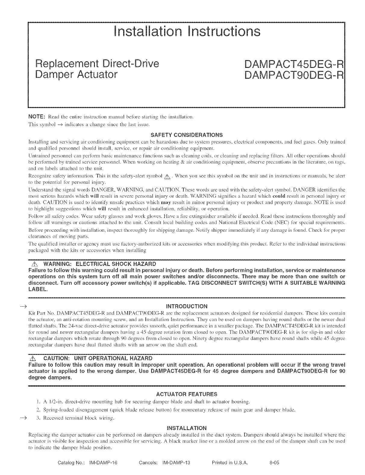 Catalog No,: IM-DAMP-18 Cancels: IM-DAMP-13 Printed in U,S,A, 8-05