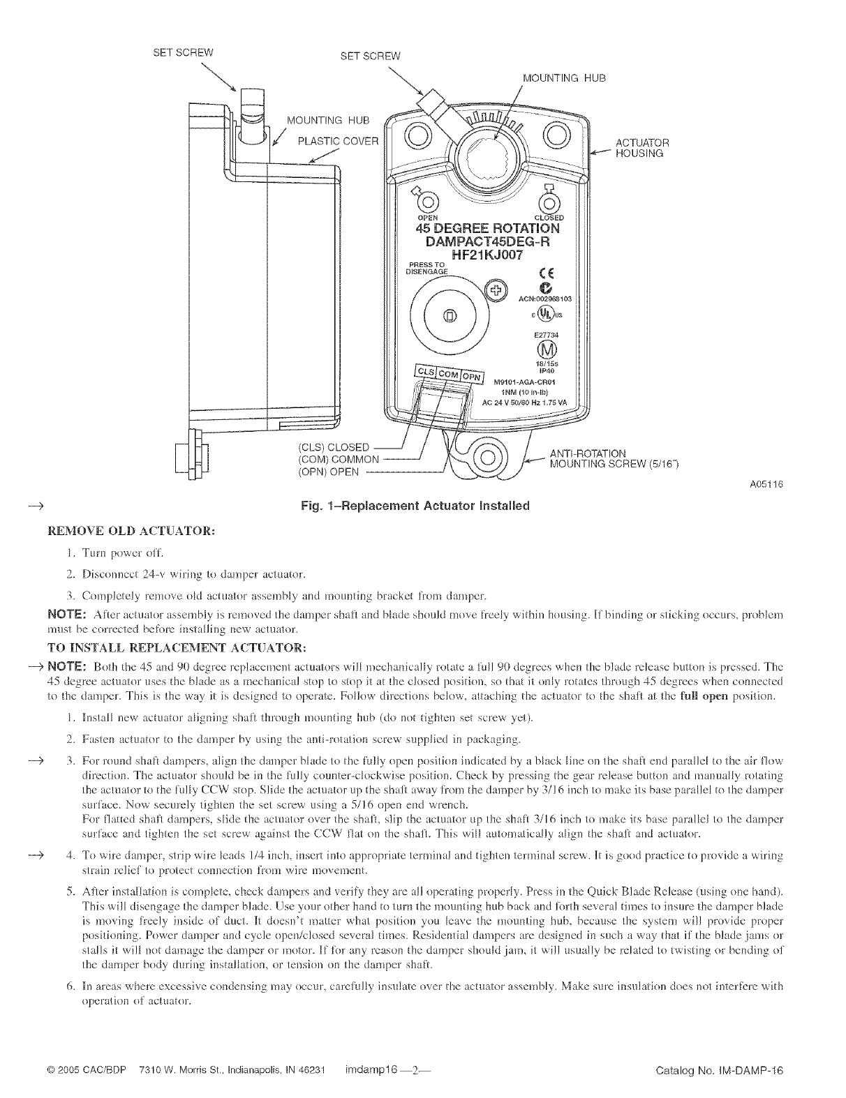 the aciuator, au auti-rotaIkm mouuIing screw, al-_dan Installation hlstruction. They caT1be used on dampers having rouud shales or the newer dua_