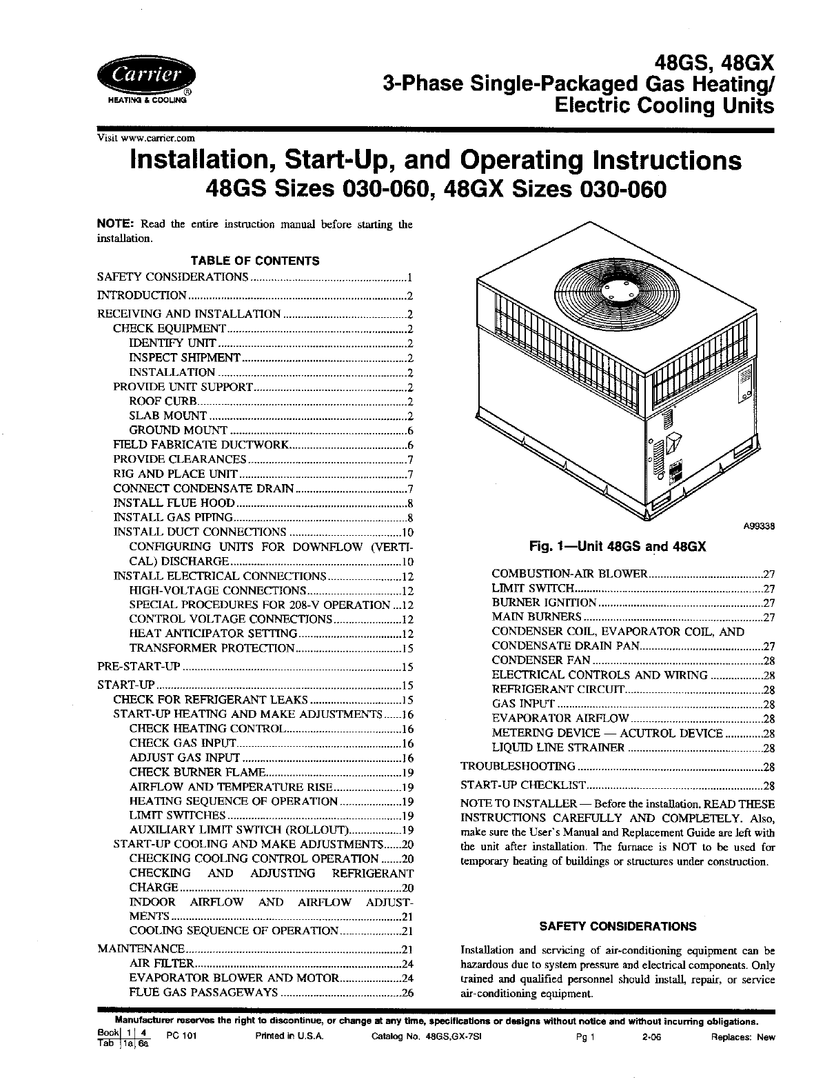 PC 101 Printed in U.S.A. Catalog No, 48GS,GX+TSI Pg 32 2-06 Replaces: New