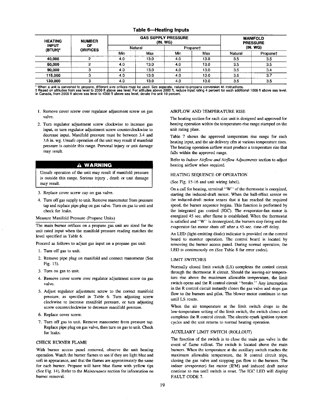 HEATING SEQUENCE OF OPERATION ..................... 19