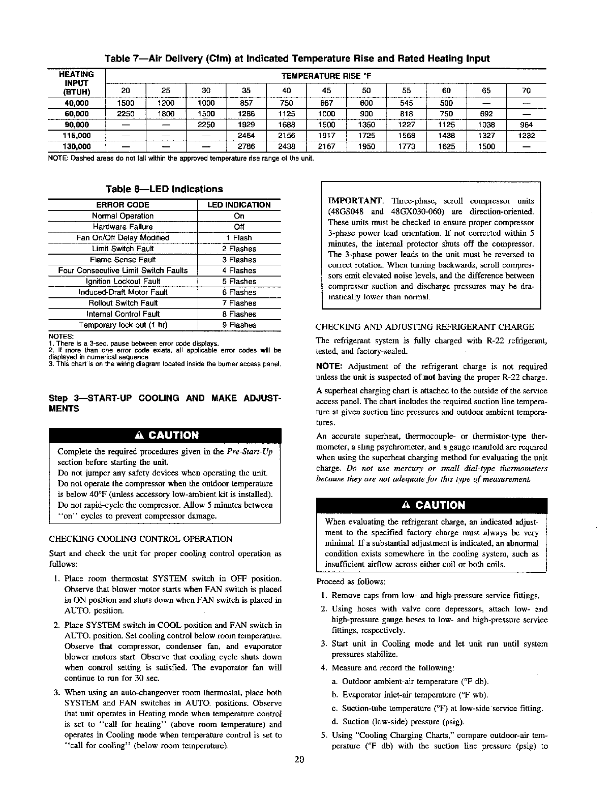 (LED 2 flashes) High tempemtore limit switch is open. that the supply-air temperature rise is in accordance with the range