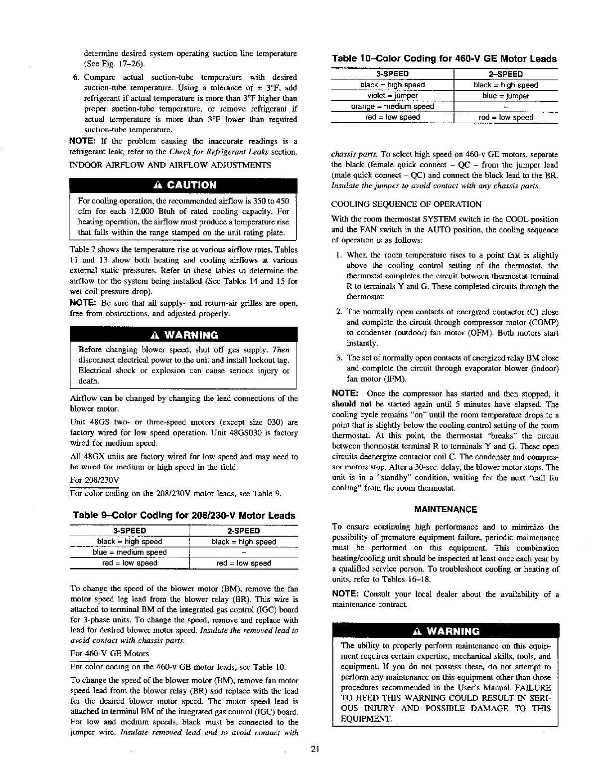 COOLING SEQUENCE OF OPERATION ..................... 21