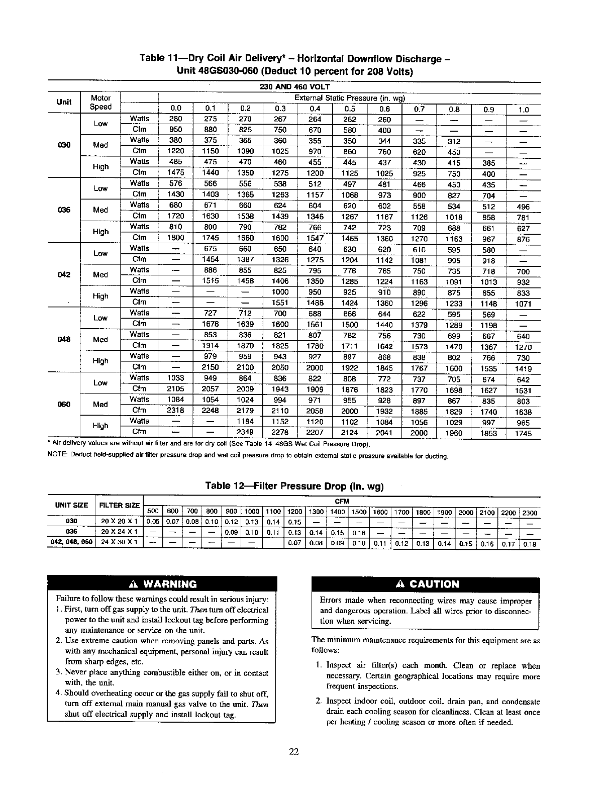 48GS Sizes 030-060, 48GX Sizes 030-060
