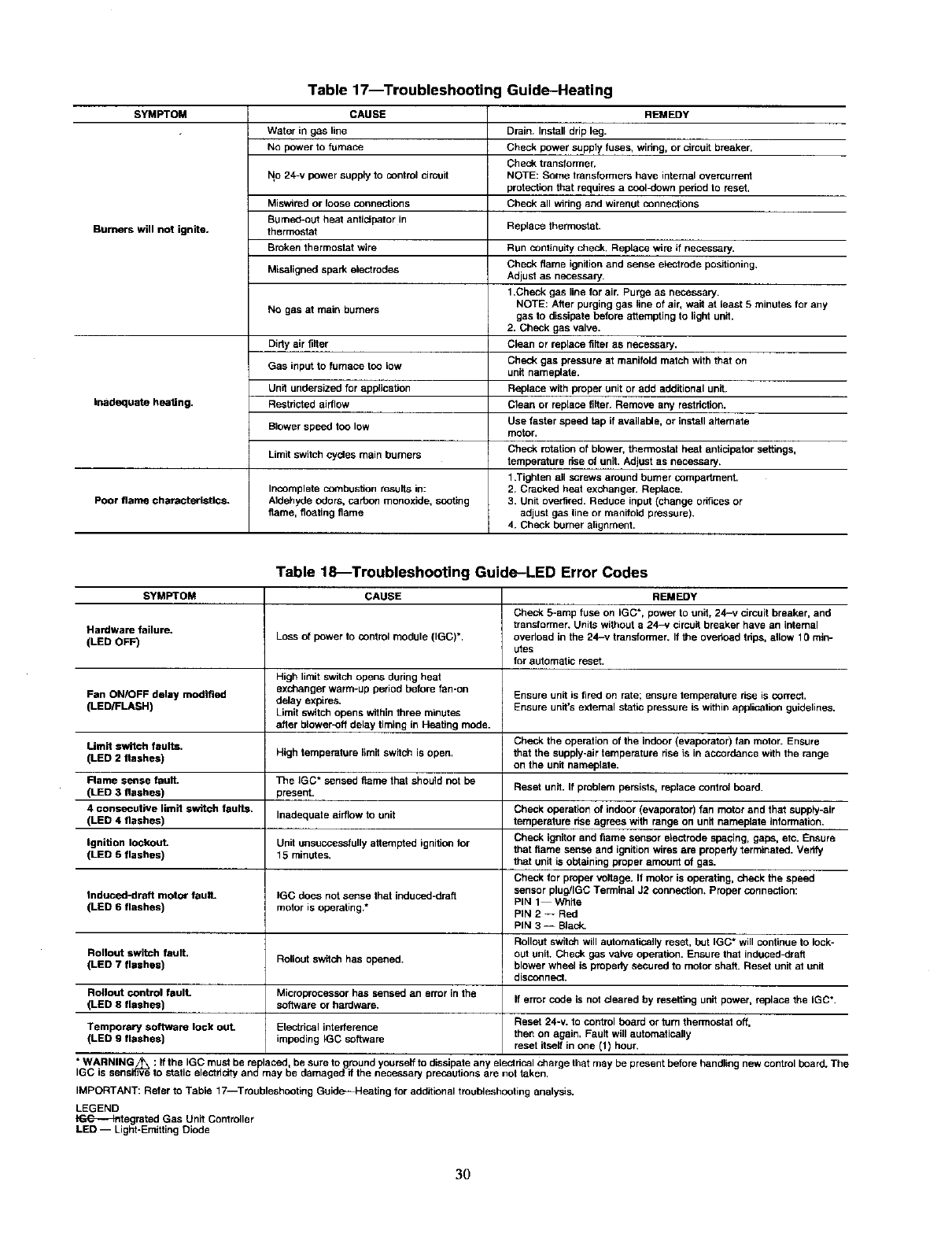 IMPORTANT: Refer to Table 17--Troubleshoofing Guide-q-leating for additional troubleshooting analysis.