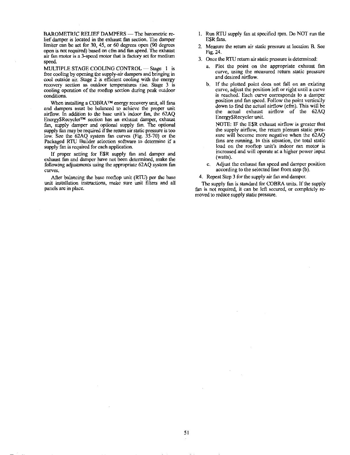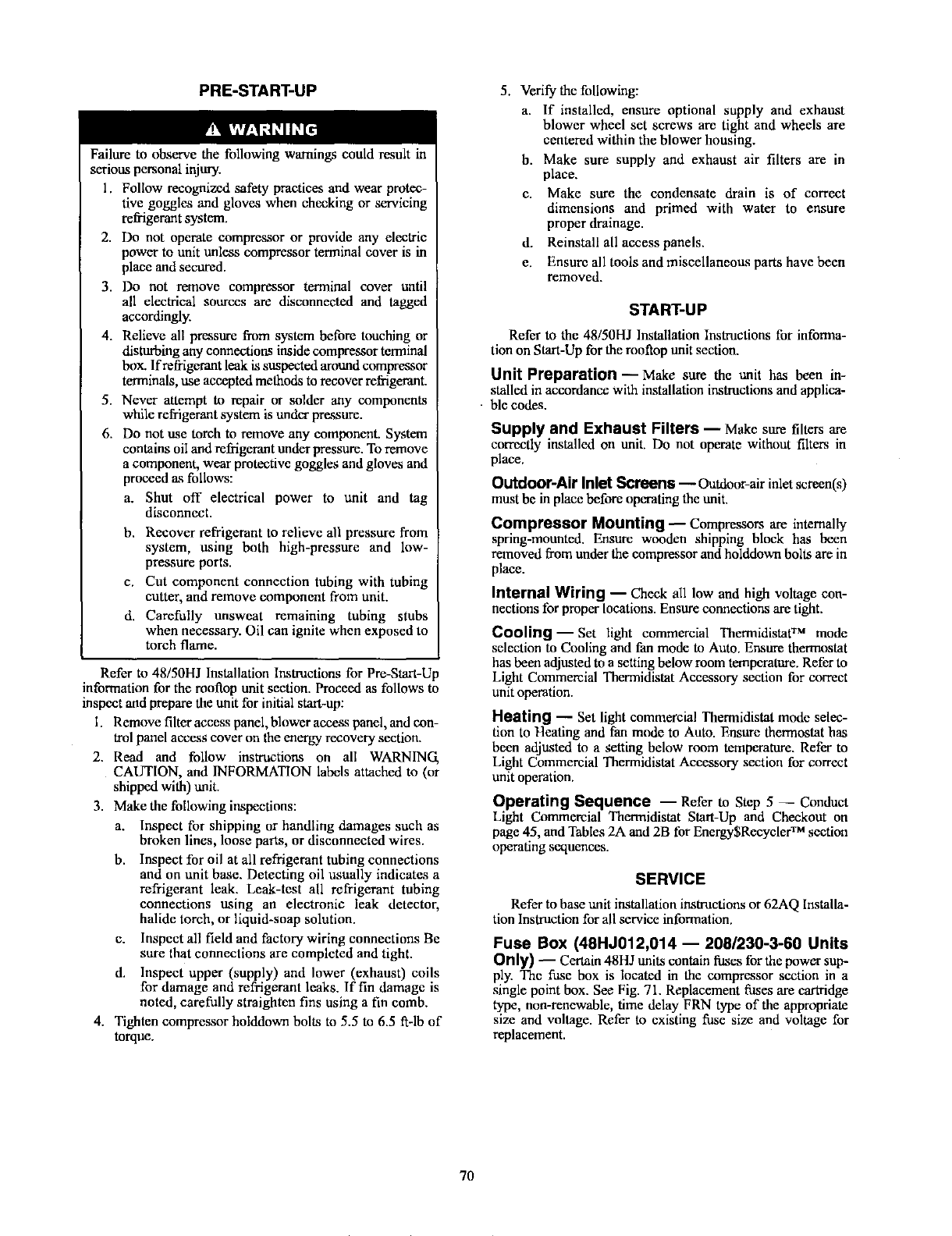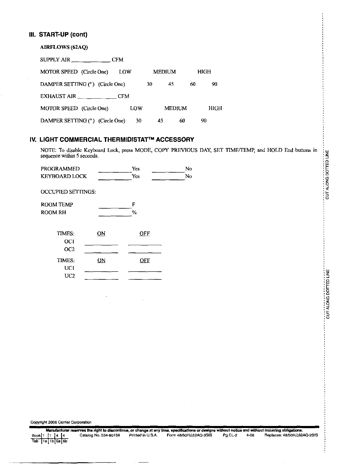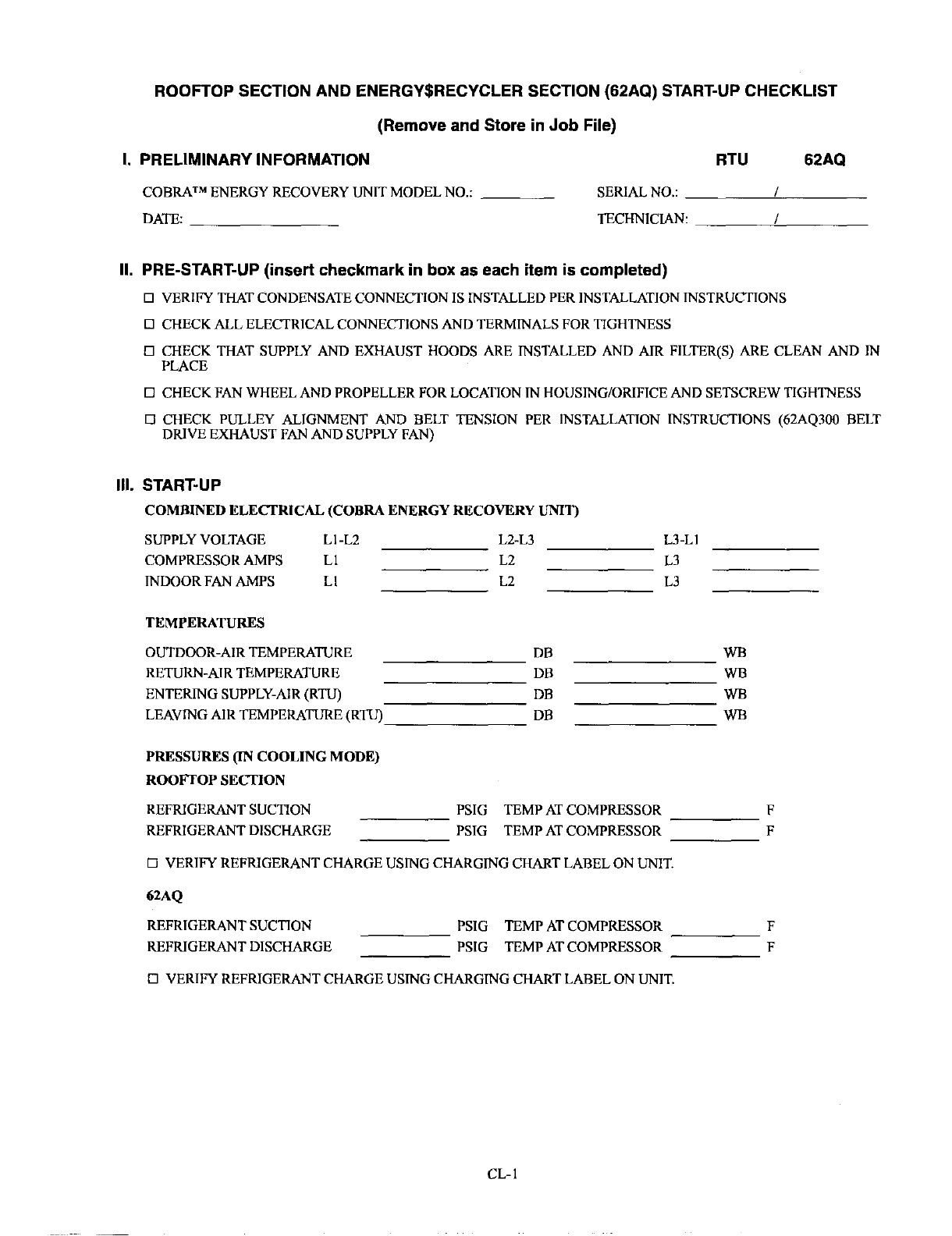ROOFTOP SECTION AND ENERGY$RECYCLER SECTION (62AQ) START-UP CHECKLIST