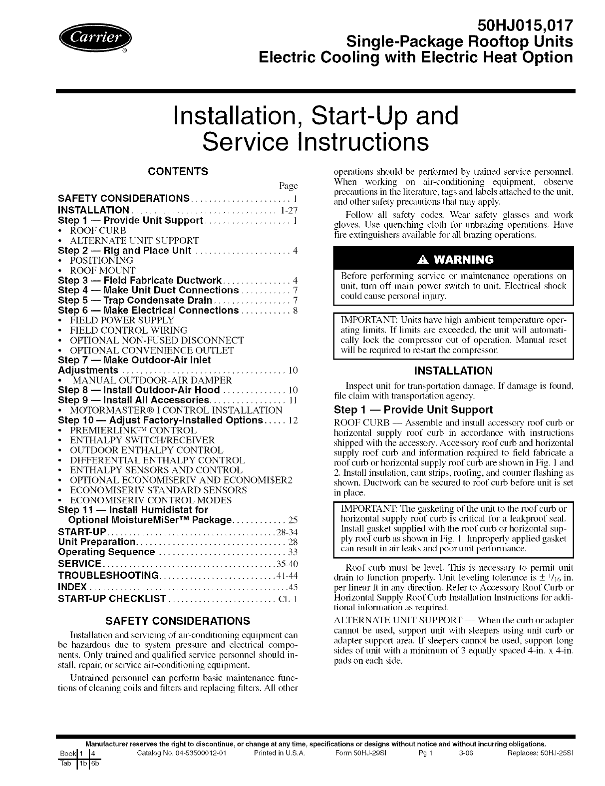 Catalog No. 04-53500012-01 Printed in U.S.A. Form 50HJ-29SI Pg 46 3-06 Replaces: 50HJ-25SI