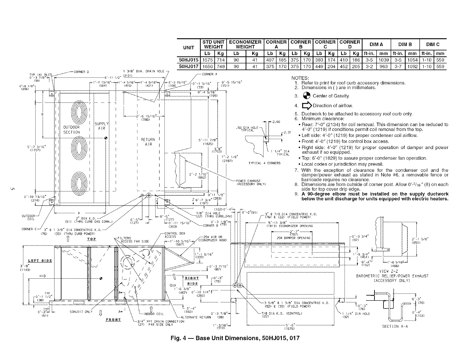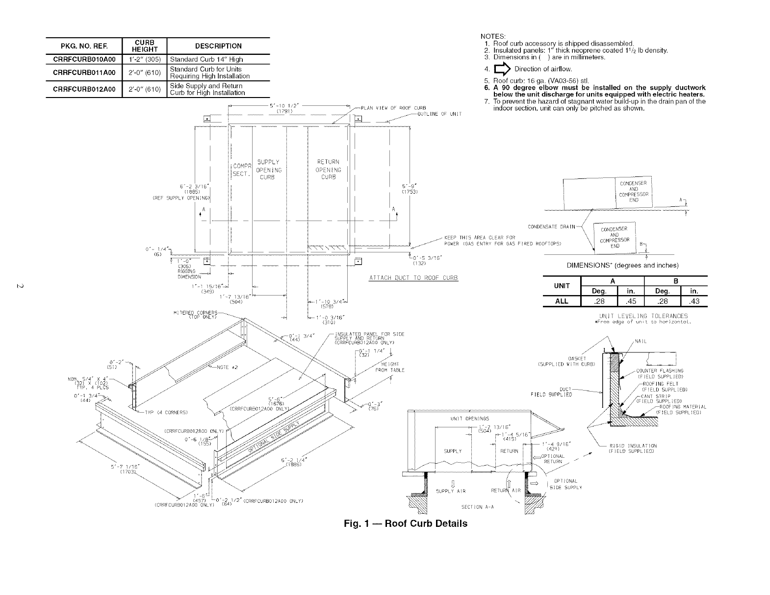 per linear ft in any direction. Refer to Accessory Roof Curb or