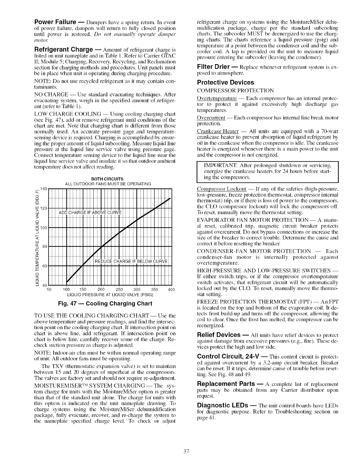 [] VERIFY REFRIGERANT CHARGE USING CHARGING CHART ON PAGE 37.