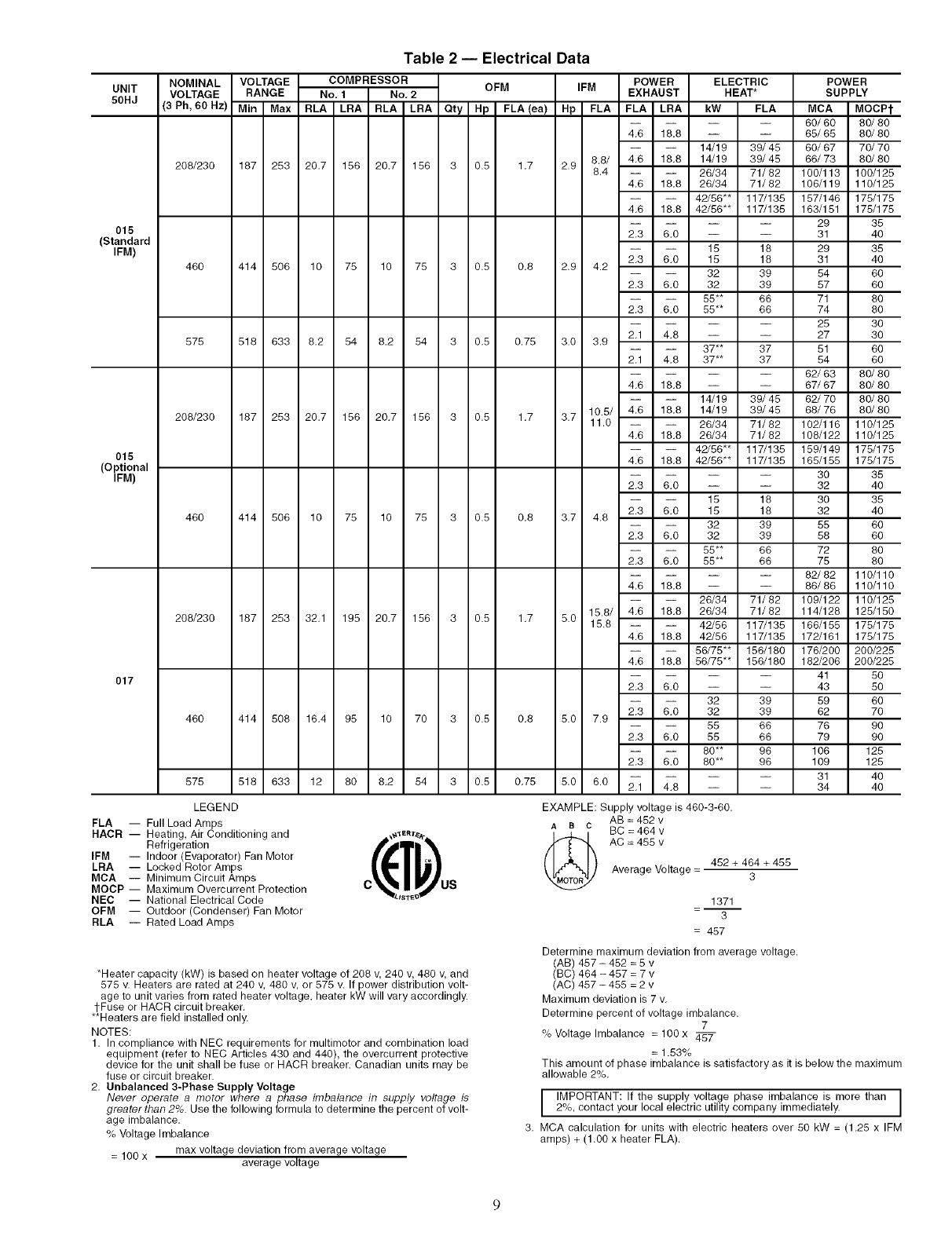 ELECTRIC HEAT AMPS (IF SO EQUIPPED) Ll L2 L3