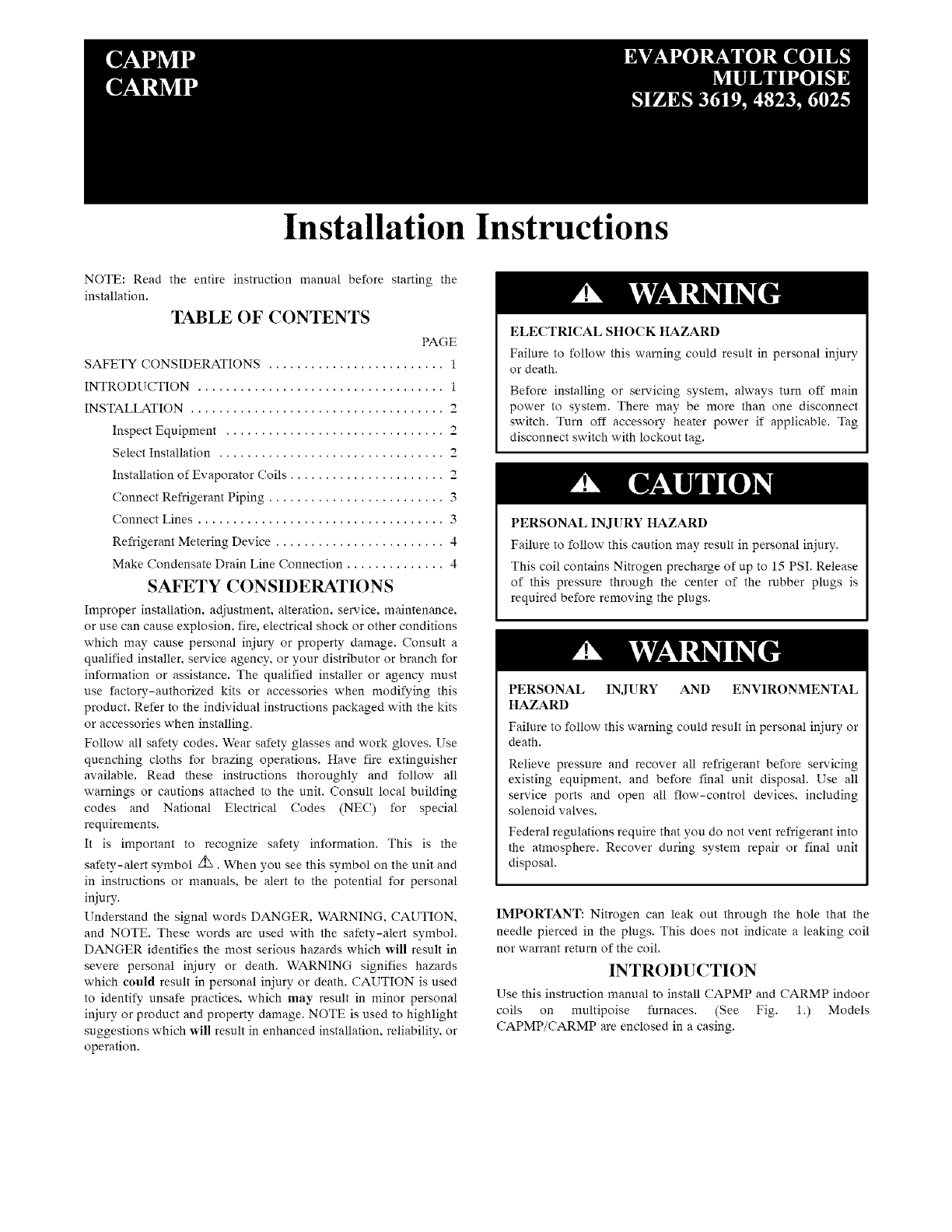 User Manual: CARRIER CARRIER Evaporator Coils Manual CARRIER Evaporator Coils Owner's Manual, CARRIER Evaporator Coils installation guides
