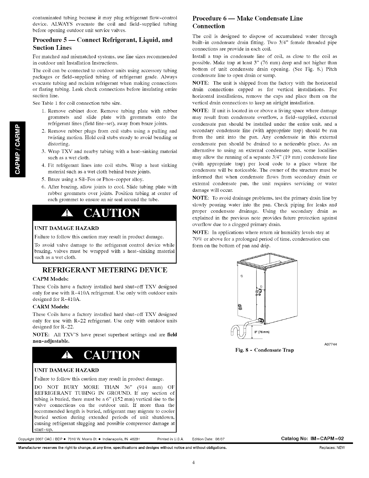 bottom of unit condensate drain opening. (See Fig. 8.) Pitch